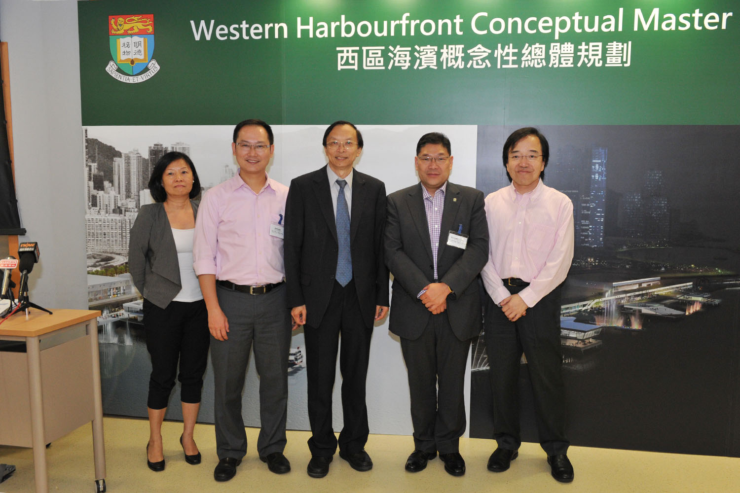 (從左起) 香港大學城市規劃及設計系講師盧愛玲女士, 中西區區議會副主席陳學鋒議員, 香港大學城市規劃及設計系系主任葉嘉安講座教授, 中西區區議會主席葉永成議員 BBS, MH, JP及香港大學城市規劃及設計系教學導師 鄧兆星博士合照。