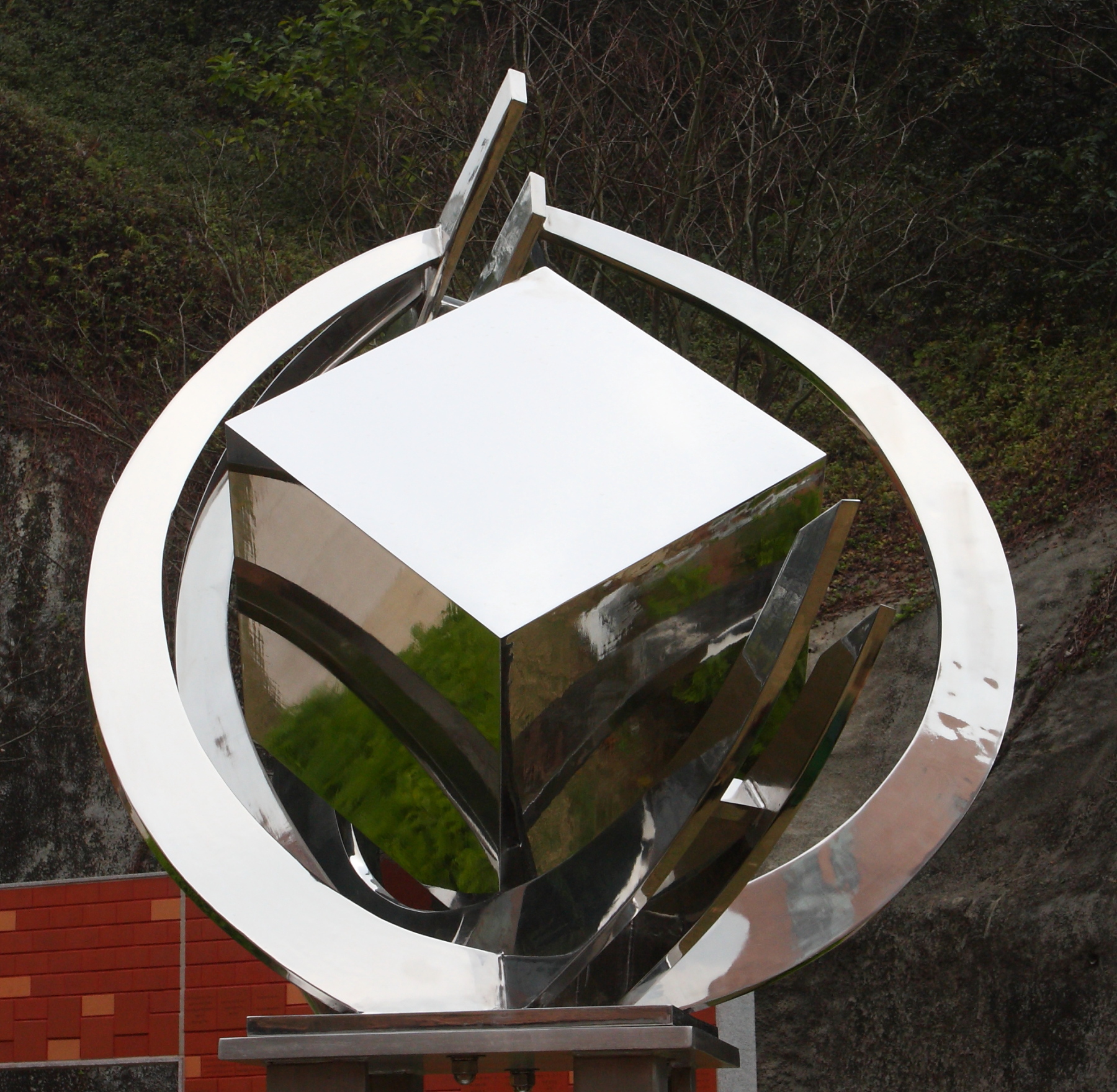 雕塑的概念來自校長徐立之教授,由高華文教授負責設計。雕塑的中文名「外圓内方」出自《後漢書 • 郅惲傳》,比喻爲人處事豁達,內心有固守的準則。拉丁文名字 “Fortiter in re, Suaviter in modo”,英文翻譯為“resolute in execution, gentle in manner" 或 "vigorous in deed, gentle in manner”,意指「待人溫良,處事剛毅」,乃取自十六世紀一位意大利耶稣會教士的著作。