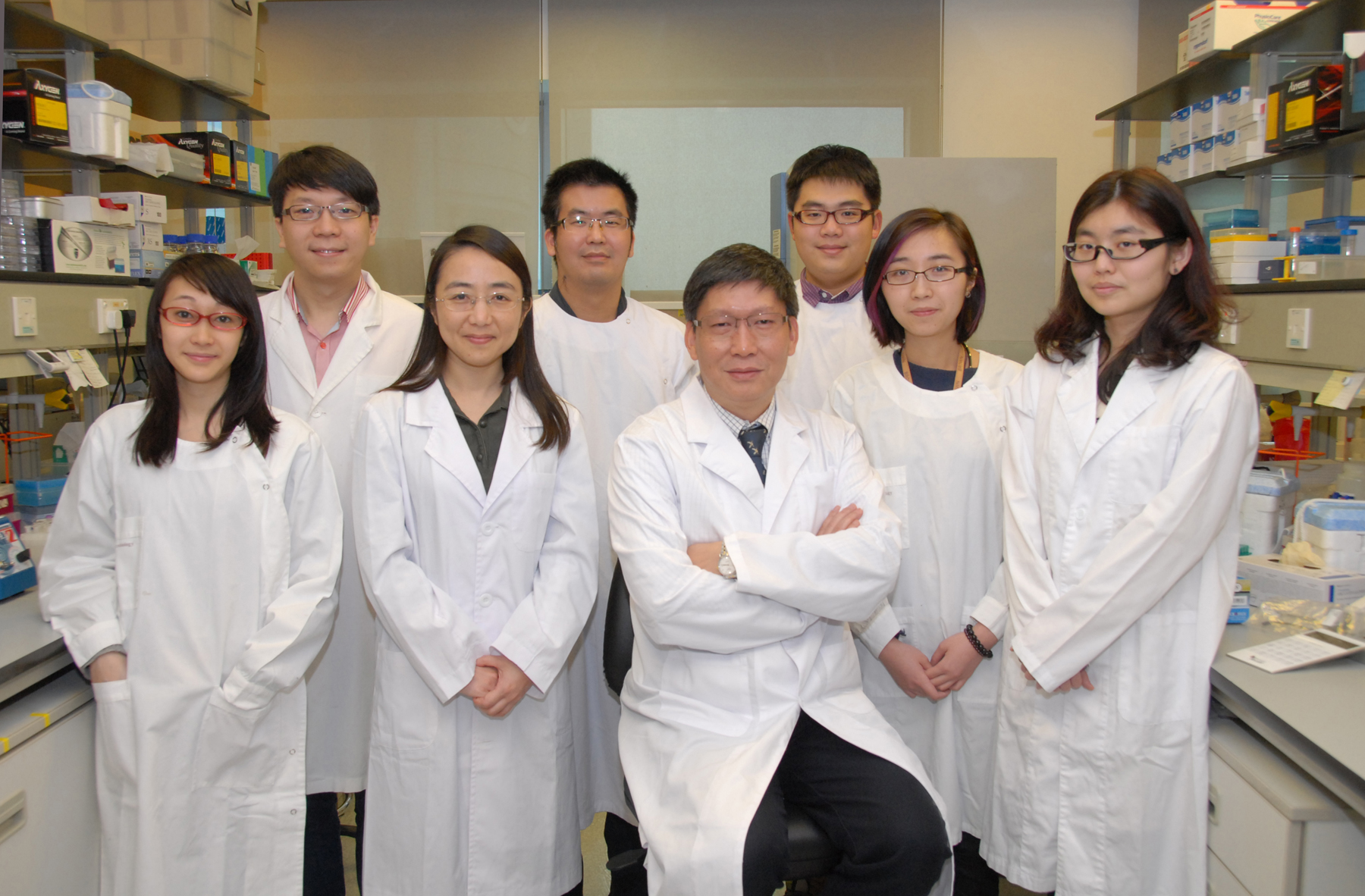 香港大學李嘉誠醫學院公共衞生學院教授、於崇光基金教授(病毒學)管軼教授(前排中)及其研究團隊發現甲型禽流感H7N9病毒的進化、傳播和流行規律,指出該病毒至少已經出現三種地方化流行譜系以及48種不同基因型的重組變種。