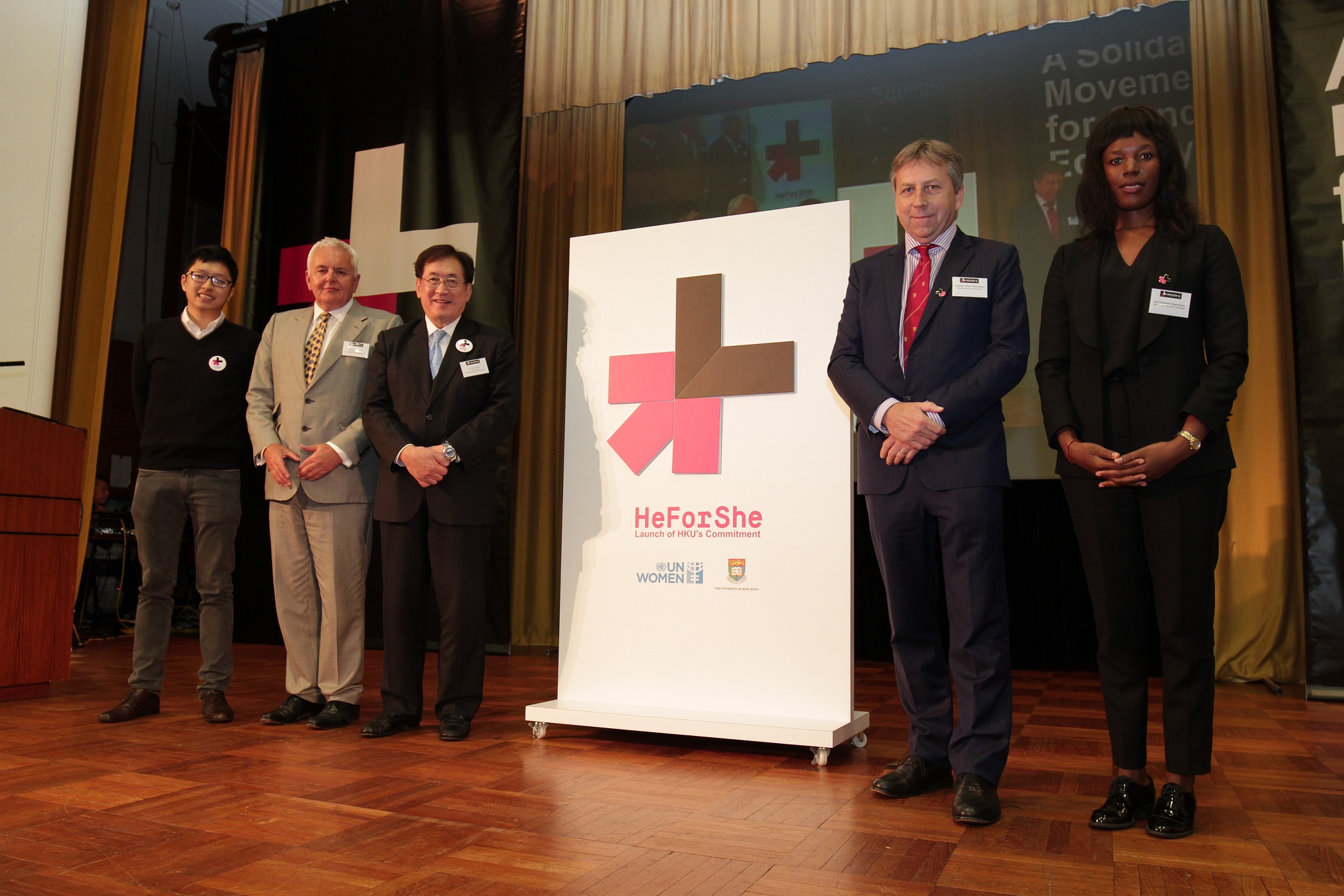 聯合國婦女署正籌劃一個名為10X10X10的群組,包括10名國家元首、十名國際企業的行政總裁,以及10名大學校長,透過他們的影響力推動「他為了她」。聯合國邀請了香港大學校長馬斐森教授為全球10名校長代言人之一,馬斐森教授亦欣然答允。在今天的活動,他公開承諾推動改善性别平等,尤其希望港大的男性可以積極參與,一同為「他為了她」運動出一分力。