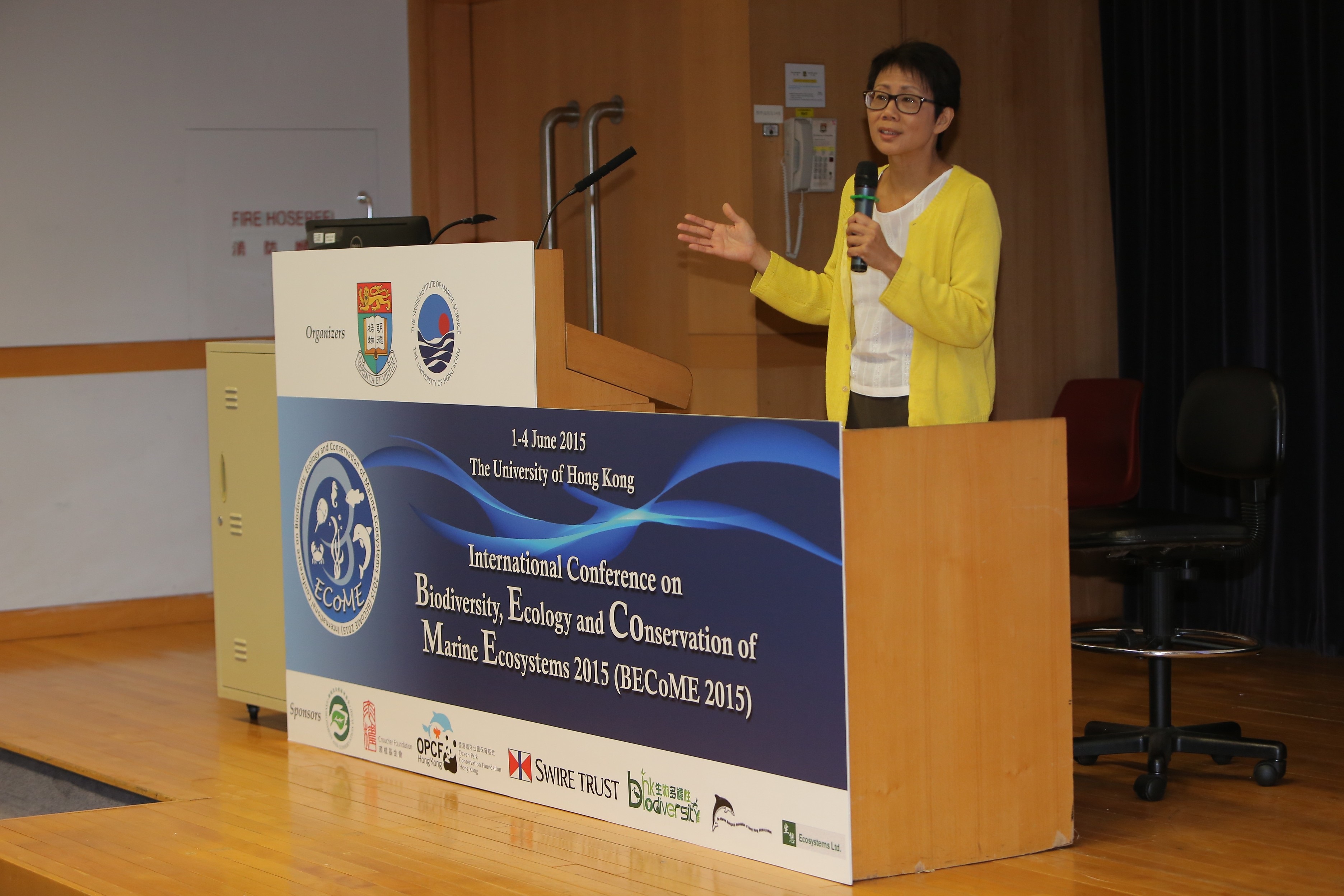 香港大學理學院生物科學學院和太古海洋科學研究所(SWIMS)聯合舉辦的「2015年海洋生物多樣性、生態及生態系統保育國際會議」(BECoME 2015),於2015年6月1至4日於香港大學黃麗松講堂進行。來自26個國家約280多名與會代表,一起討論目前國際上海洋生物多樣性、生態及生態系統的最新發現,並探討如何更好的保護海洋生物多樣性和漁業資源。