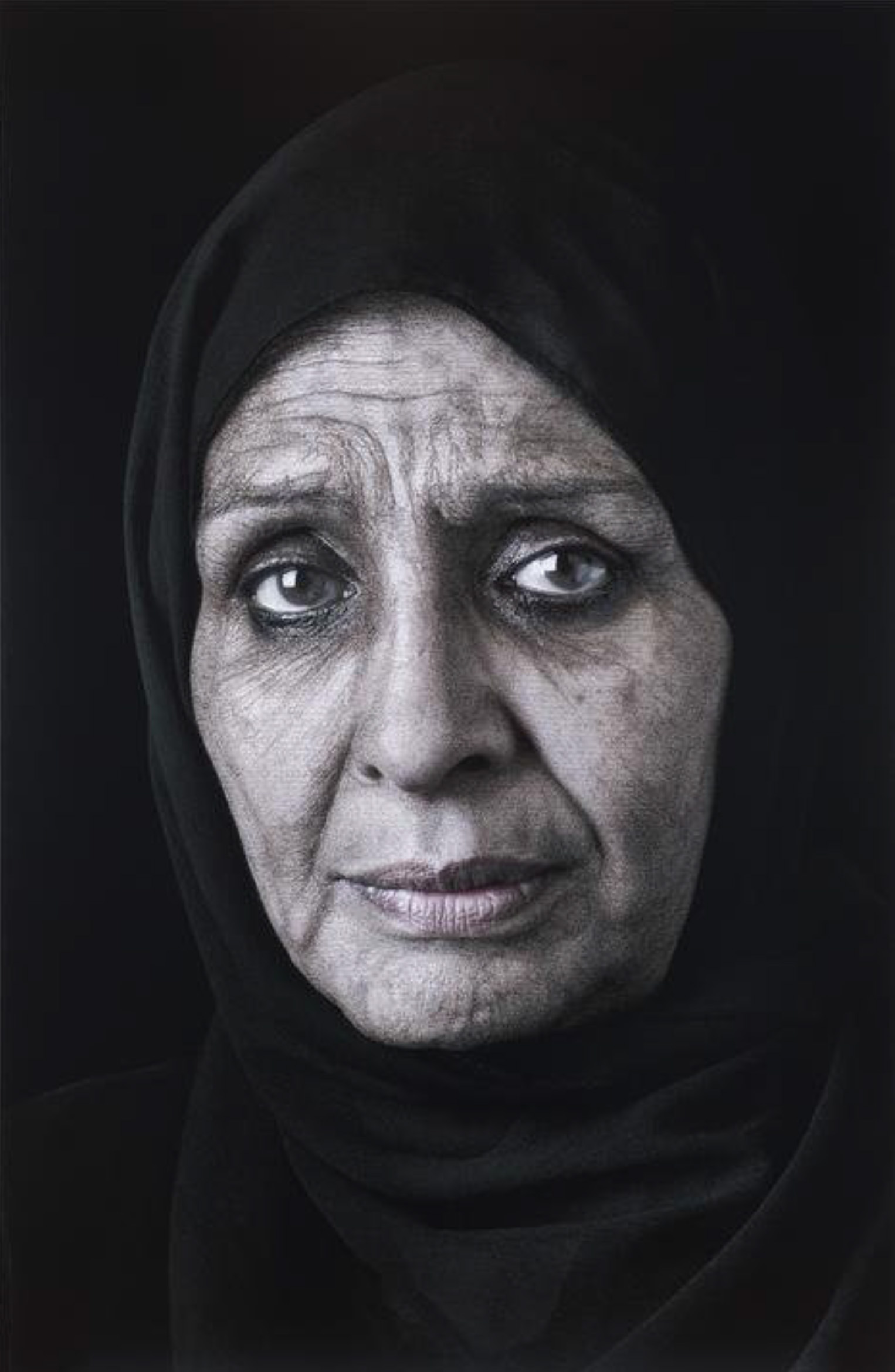 Ghada and Sayed, portraits of an Egyptian woman and man, are from Neshat’s Our House is on Fire series, which was commissioned by the RRF in 2012 as part of their One-to-One initiative, in which contemporary artists create