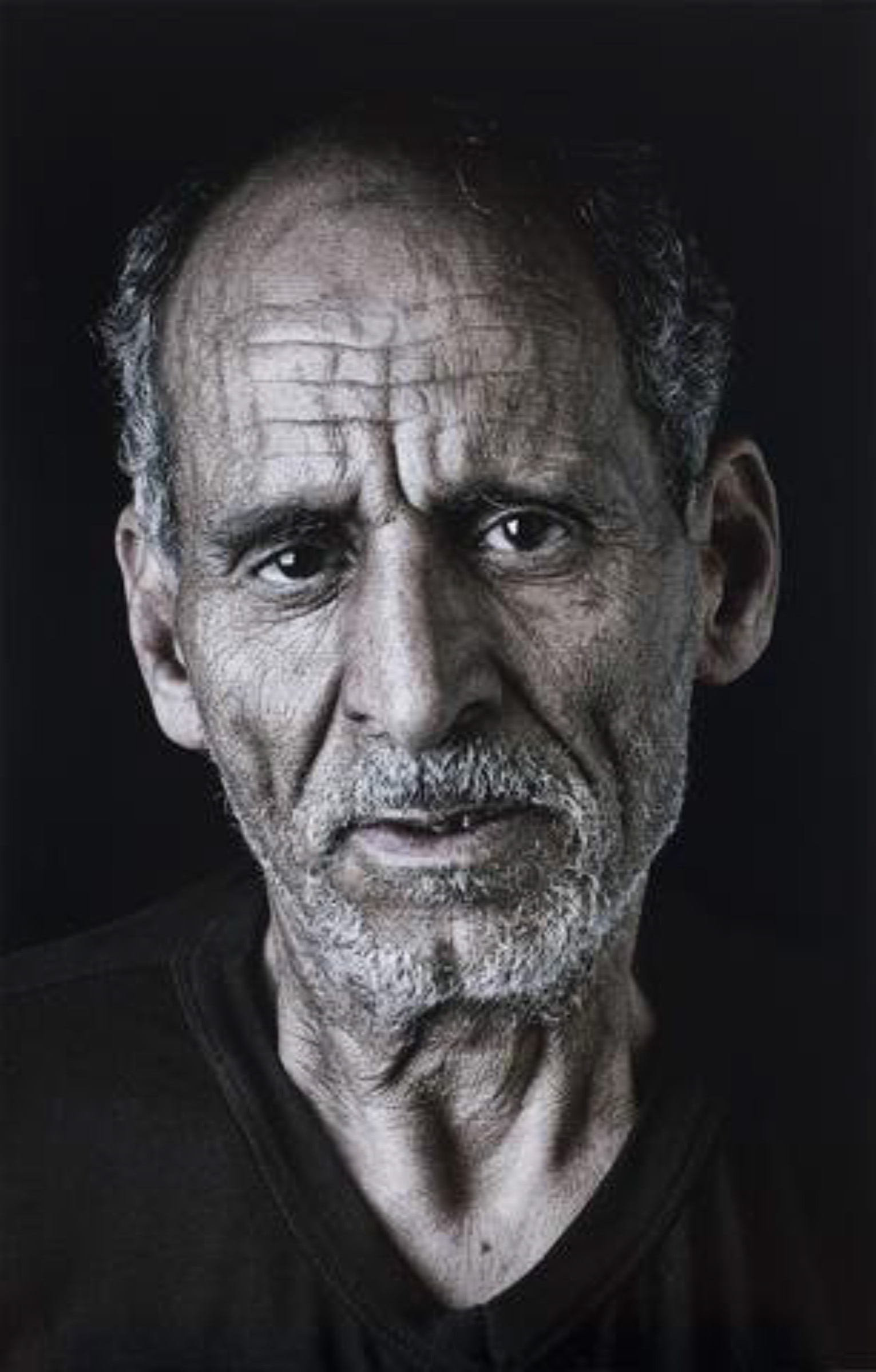 work in the service of human rights. In the series, Neshat investigates the universal experience of pain and mourning on national and personal levels as part of her exploration of Egypt’s Arab Spring. In Egypt, the artist invited people to sit down in front of her camera and share their individual stories of loss. By photographing her subjects at such close range, Neshat creates a poignant connection between subject and viewer. She overlays the images with a nearly indecipherable veil of text, generated from poems written during the Iranian Revolution. The Persian calligraphy inscribed across the folds of each face mirrors the way in which a national calamity has become embedded in the personal history of each individual, while bringing into conversation the Arabic speaking Egyptian world and Neshat’s Persian roots.