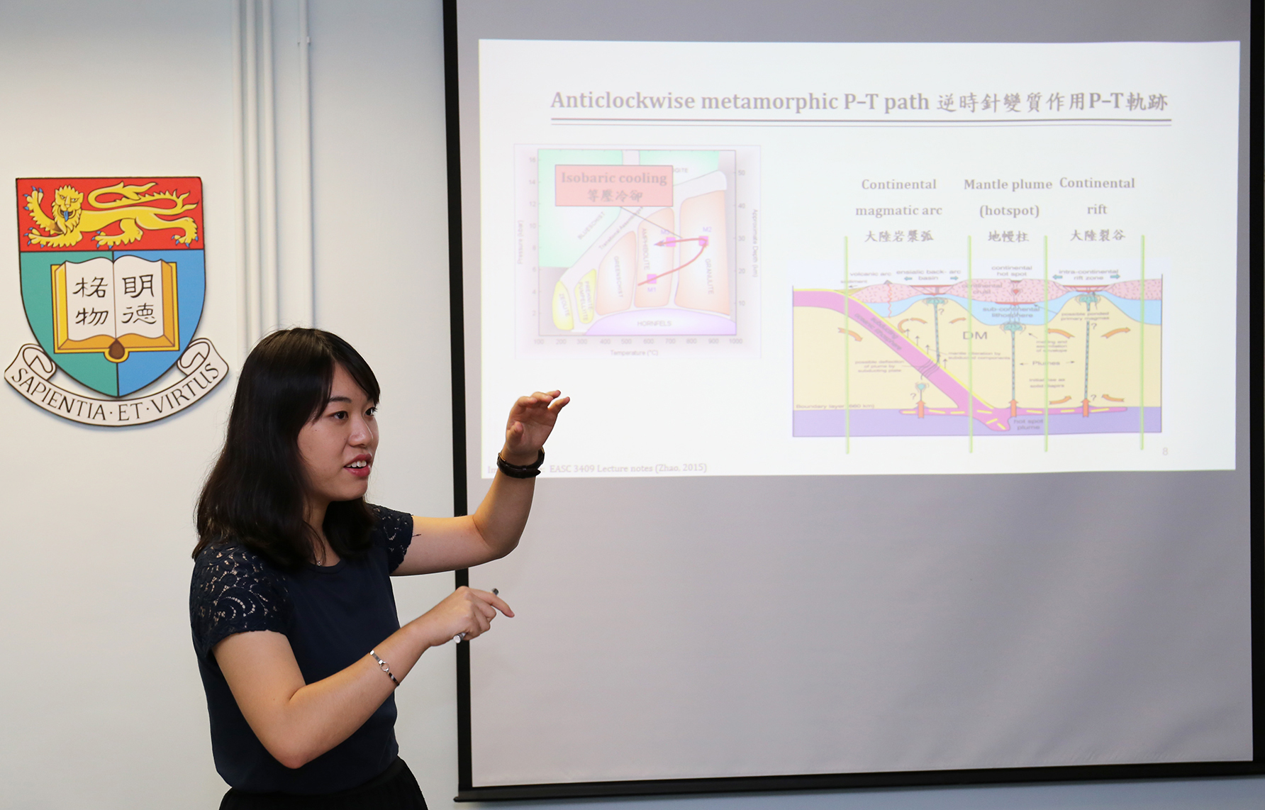 變質岩是三大岩類(即岩漿岩、沈積岩、變質岩)之一,是由於地球內部溫度、壓力等條件的變化改造而成的新岩石。關同學在學期間,曾經修讀趙教授所任教的《變質岩石學成因》,對變質岩石成因與構造環境及演化過程的關係產生莫大的興趣,繼而希望進一步研究相關題材。因此,她邀請了趙教授擔任她的本科畢業論文的導師,並以「冀東基性麻粒岩變質壓力 --- 溫度演化歷史: 對華北克拉通東部陸塊晚太古構造演化的意義 」作為論文的題目。