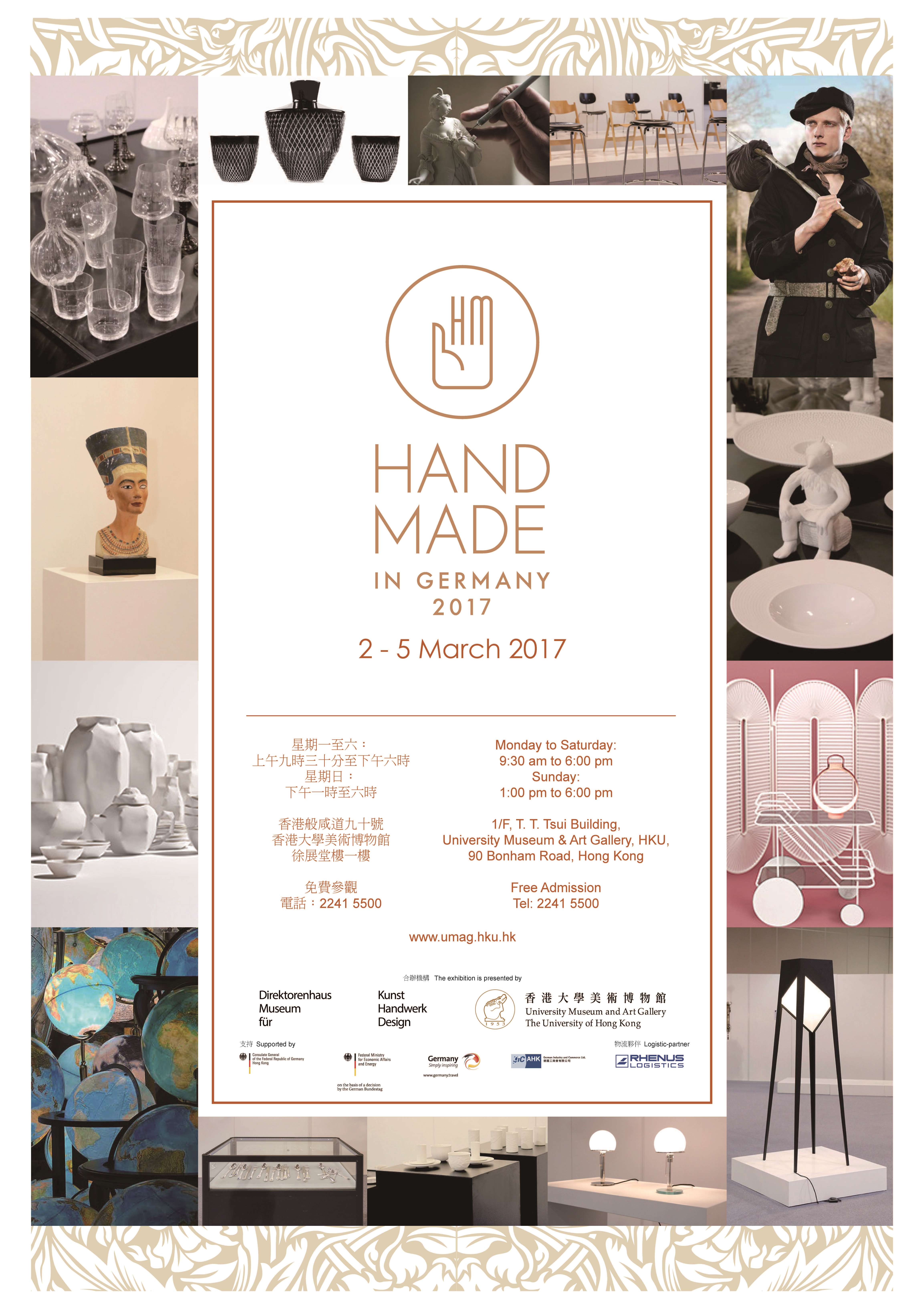 香港大學(港大)美術博物館及the Direktorenhaus Berlin將由2017年3月2日至5日聯合舉辦《德國──手工製造》展覽,展示德國製造商的大師級作品。