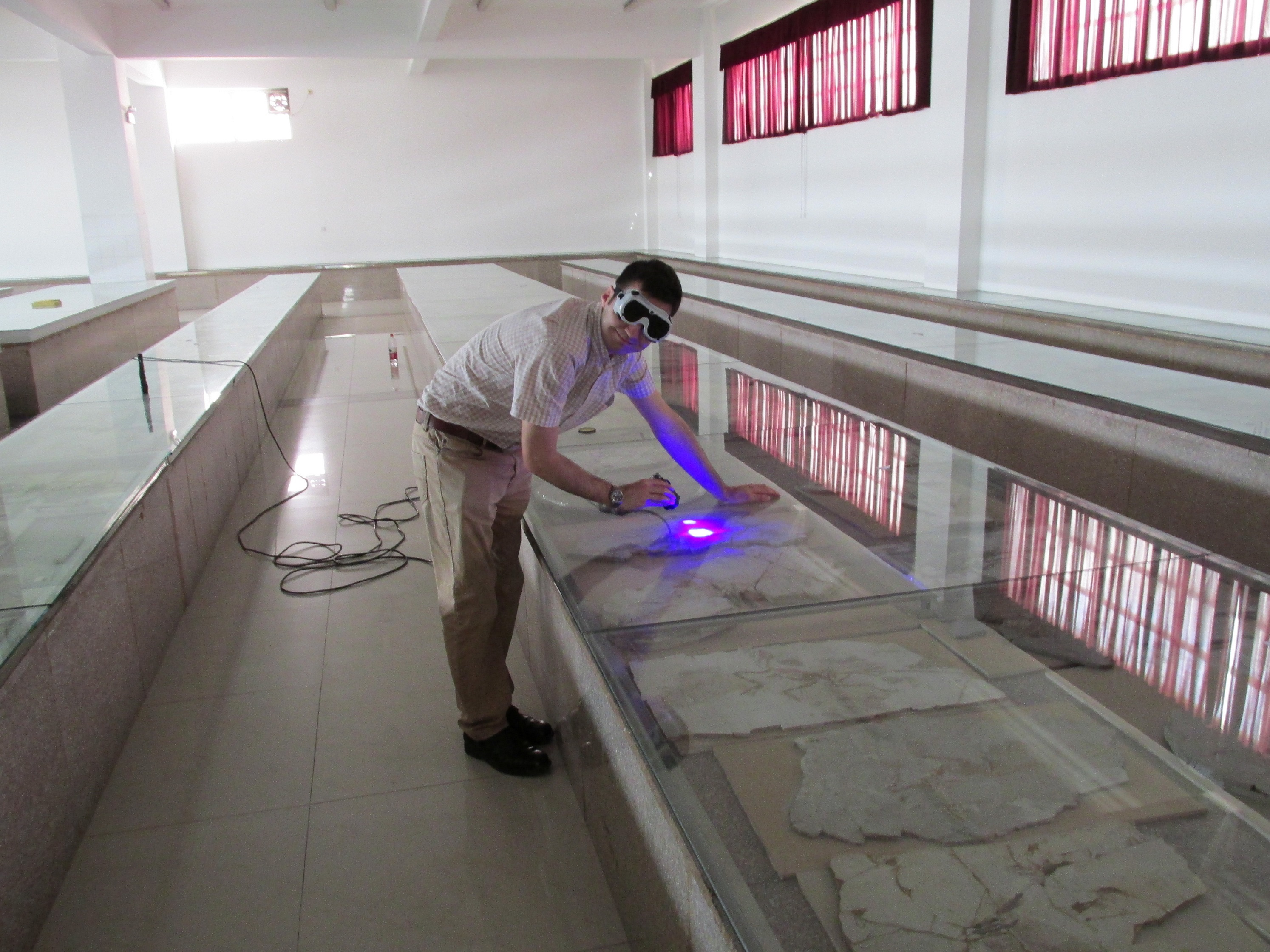 激光誘導螢光技術(Laser-stimulated fluorescence,LSF)是一種革命性的新技術,利用高强度激光令在骨頭周圍、肉眼看不到的軟組織「在黑暗中發出螢光」(圖二和三)。這技術由合作夥伴Foundation for Scientific Advancement的 Tom Kaye研發,利用紫色激光在黑房中掃描化石。激光會「刺激」一些保留在岩石基質的皮膚原子令它們發光,以揭示恐龍真正的外形(圖四)。研究文章的主作者兼古生物學家文嘉棋博士指出:「過去二十多年來,我們一直對中國東北部那些奇異的帶羽毛恐龍感到驚嘆。然而,我們從來沒有想過軟組織會這樣廣範地被保存下來。」