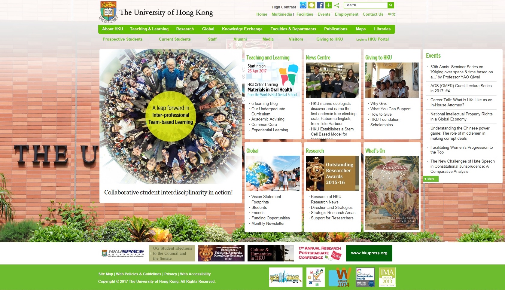 香港大學網站hku.hk面向全世界,服務對象廣泛:港大除了照顧在讀學生和準備報讀的學生,也為教職員、科研人員、校友、國際協作夥伴等提供所需資訊,務求令大眾了解港大的抱負、願景和倡議的項目。網站旨在推介本校的卓越教學和科研成就、參與國際交流協作以及促進知識交流。