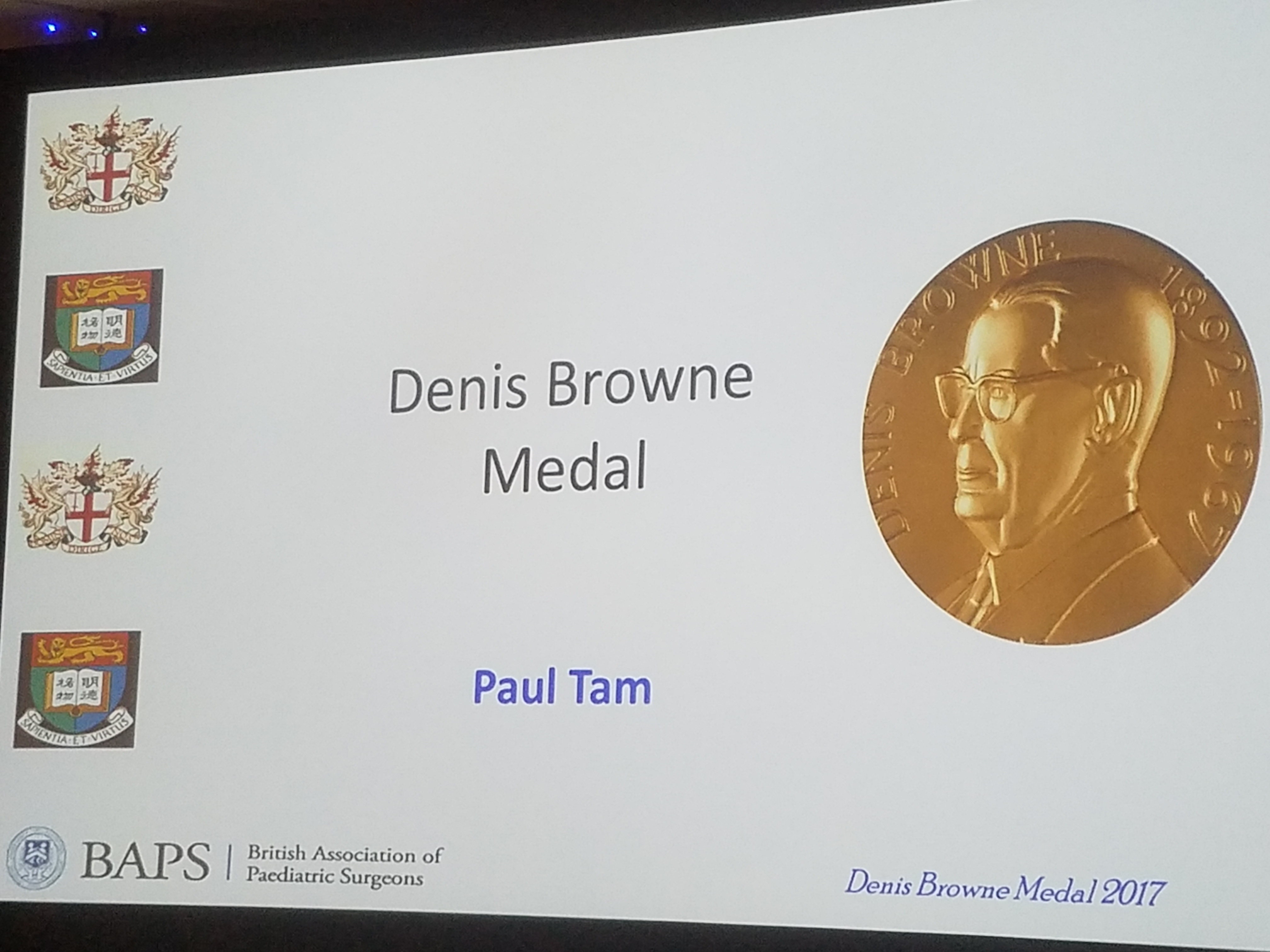 BAPS是國際間其中一個歷史最悠久的權威小兒外科組織,每年從全球獲提名的小兒外科專家中揀選一人,頒授Denis Browne Gold Medal最高榮譽,以表揚其對小兒外科的卓越貢獻。獎項以英國小兒外科之父Sir Denis Browne命名。Sir Denis Browne是全球小兒外科的先驅。