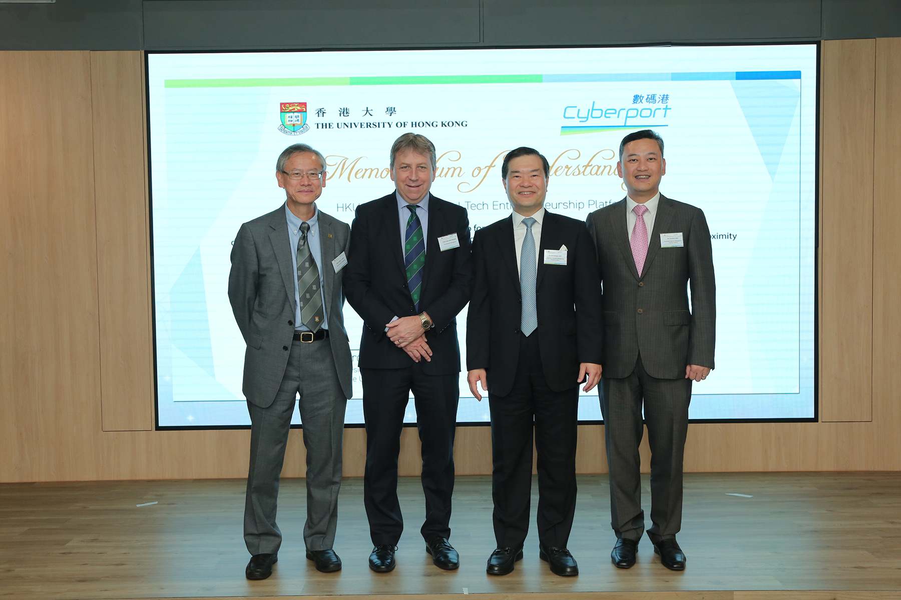 數碼港行政總裁林向陽先生及港大副校長(研究)賀子森教授將代表雙方,並於數碼港董事局主席林家禮博士及港大校長馬斐森教授的見證下,簽署合作協議。