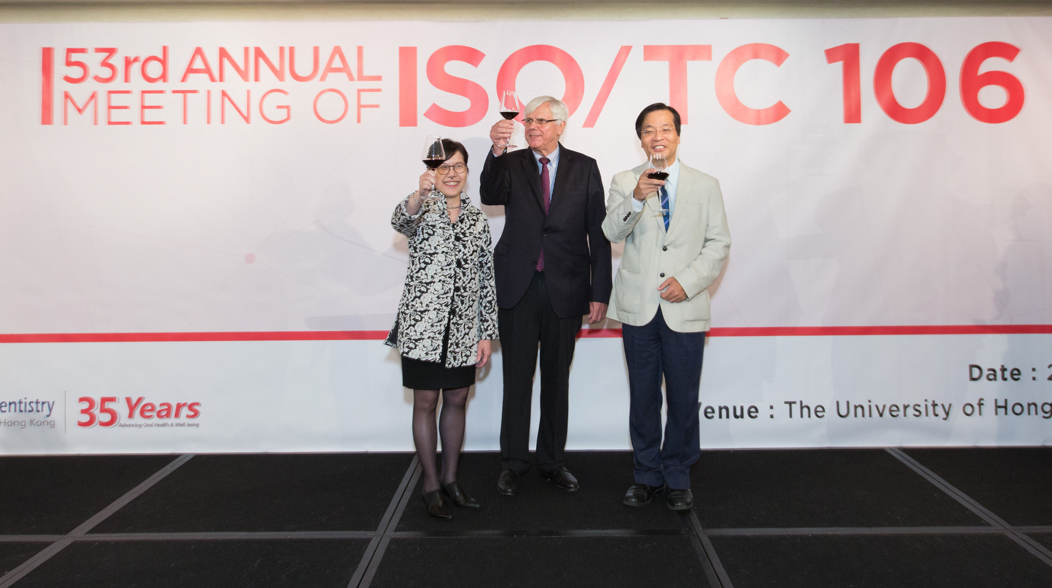 香港大學牙醫學院副院長(對外事務)朱振雄教授補充:「我們非常榮幸及高興能有機會協辦今次國際標準化組織(ISO)技術委員會(TC)106年會。我希望我們的承諾及付出能夠協助確保消費者獲取高質素及安全的牙科產品和服務,促進及提升全球口腔健康;並期盼今次的會議將會有新標準誕生,為公眾安全、牙科材料、及口腔產品寫下新一頁。」
