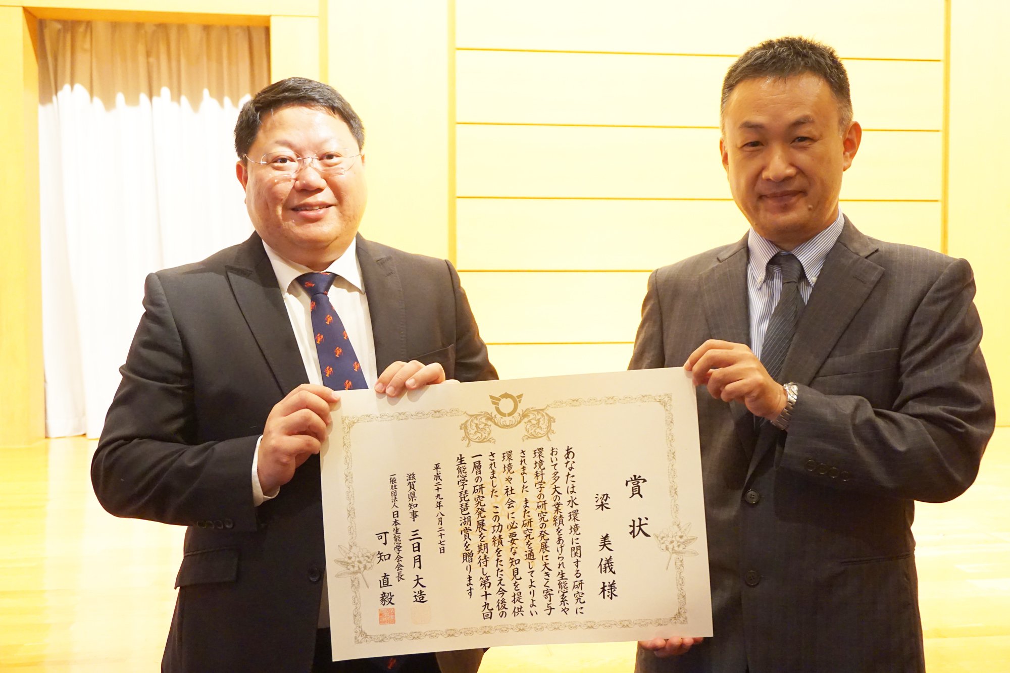 香港大學太古海洋科學研究所及生物科學學院梁美儀教授在八月下旬榮獲第十九屆生態學琵琶湖獎,並於日本琵琶湖博物館進行了頒獎儀式。生態學琵琶湖獎是由日本滋賀縣政府和日本生態學會聯合頒授的國際奬項,以表揚50歲以下的亞洲傑出生態學家。得獎者除了在水生生態學的學術領域有卓越的成就外,亦須具成為生態學權威學者的潛力;同時在社會服務上亦須作出顯著的貢獻。