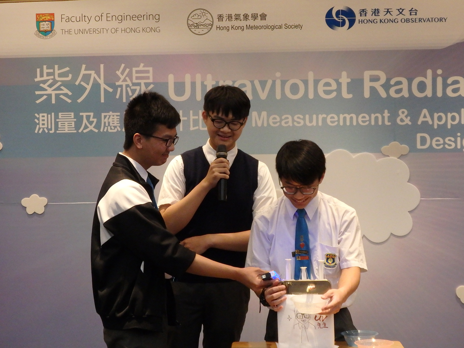 頒獎禮主禮嘉賓香港天文台助理台長徐傑志先生對同學們的創意和毅力印象深刻,他說:「量度紫外線並不容易,要把紫外線應用在日常生活中更是一大挑戰。在短短數月間便能造出既富創意,又實用的作品,實在非常難得。」