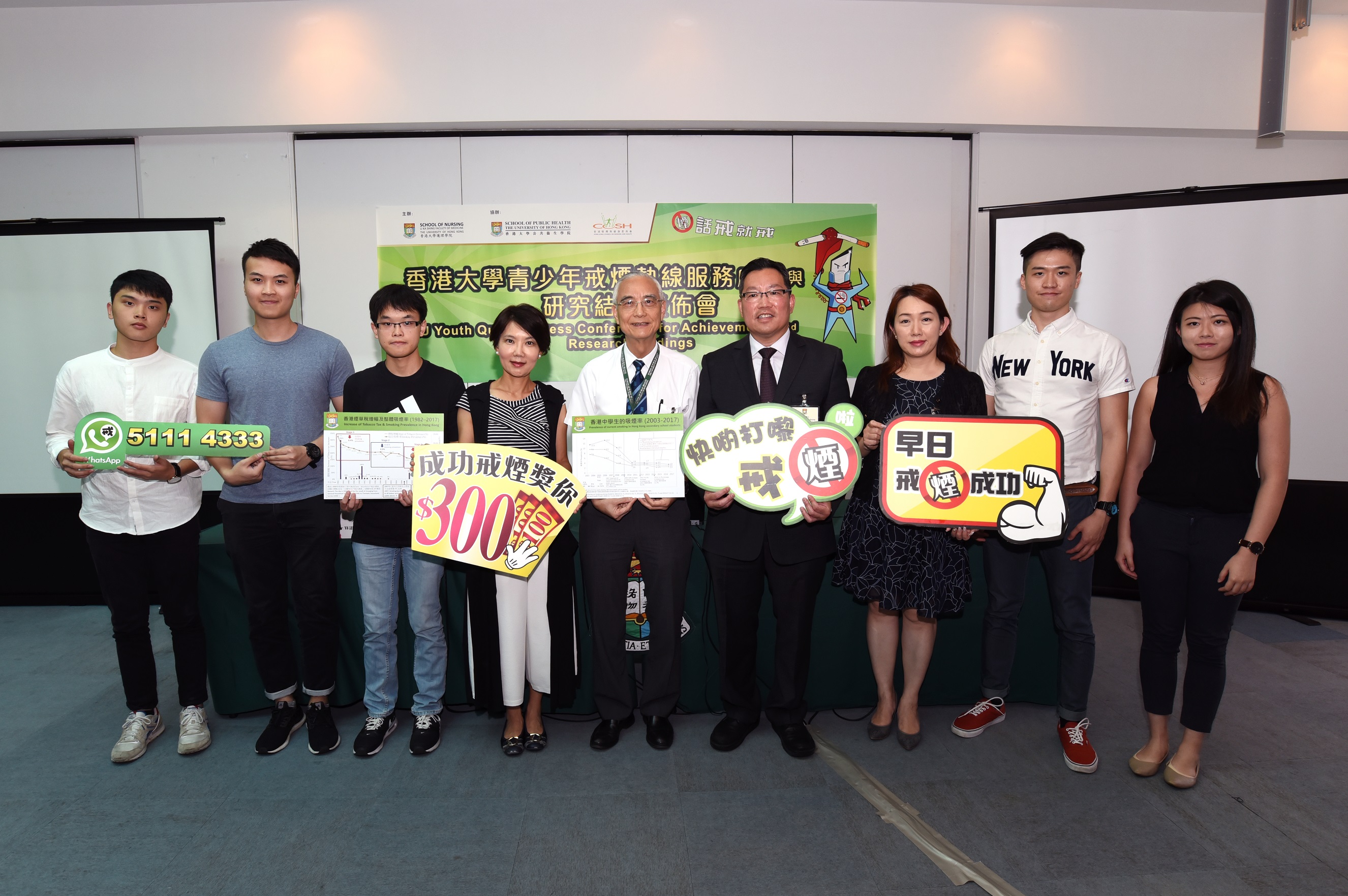 由香港大學(港大)李嘉誠醫學院護理學院戒煙治療研究組管理的青少年戒煙熱線「Youth Quitline」(「戒煙熱線」),由2005年投入服務至今,一直成效顯著,成功幫助不少參加者戒煙。第四期熱線輔導服務 (2016年12月1日 - 2018年3月31日),成功幫助超過五分一已參加戒煙熱線6個月的參加者戒煙,相比上屆戒煙率上升近百份之三。此外,戒煙熱線亦助參加者減少風險行為及促進生理及心理健康。