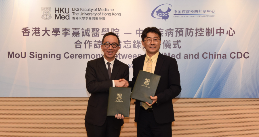香港大學李嘉誠醫學院(港大醫學院)院長梁卓偉教授及中國疾病預防控制中心(中國疾控中心)主任高福教授,於今天(2019年6月14日)在香港大學簽訂合作備忘錄,攜手培育公共衞生人才,以及加強於疾病預防控制及全球衞生方面的科研交流與合作。