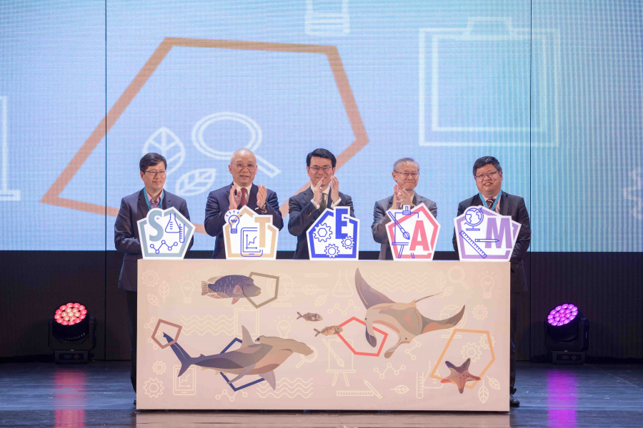 商務及經濟發展局局長邱騰華先生、海洋公園主席孔令成先生、香港大學副校長(研究)賀子森教授、教育局首席教育主任(課程發展)鄭銘強先生和香港數理教育學會主席李志文先生今天出席會議開幕典禮並擔任主禮嘉賓,為一系列精彩活動揭開序幕。