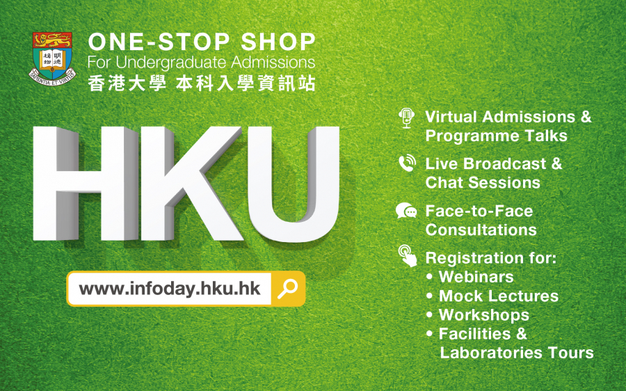 香港大學(港大)推出「本科入學資訊站」 (https://www.infoday.hku.hk),一站式覆蓋2020-21學年的最新課程及入學資訊,當中包括各個課程的影片,講解課程內容及收生要求。學生、家長及教師可透過網上講座和網上問答,了解更多及即時查詢。