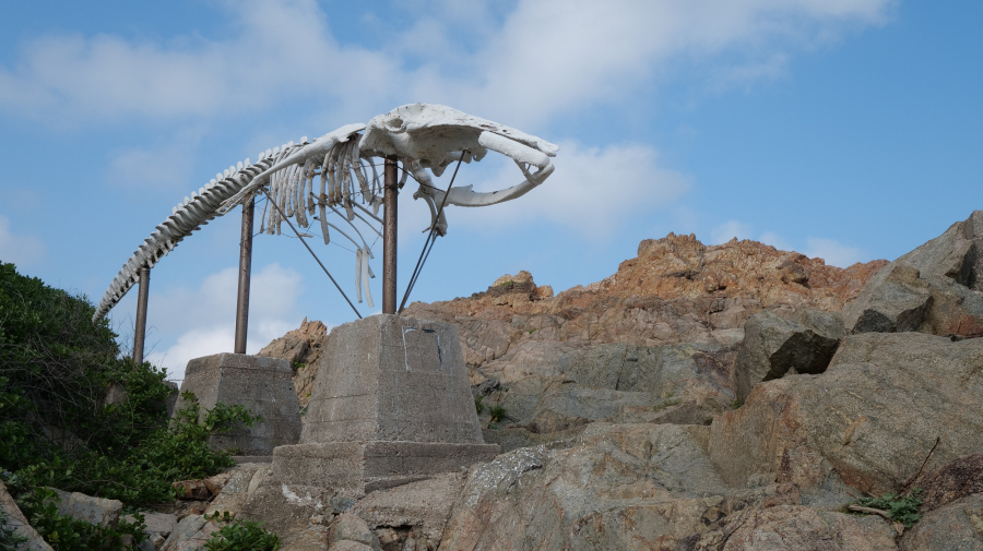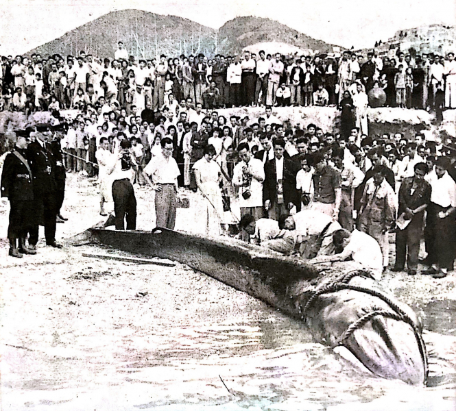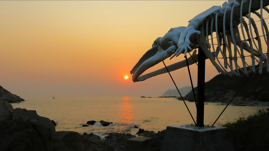 1955年夏天,一條年幼的長鬚鯨隨母鯨由南中國海向北方水域遷徙途中,意外和母鯨分開並滯留維多利亞港水域,被發現受困於一碼頭底的木樁之間。其由於過度飢餓至身體衰竭,最終需要進行人道毁滅,屍體被移送到香港仔由香港大學的動物學家處理,其骸骨經保存後於港大校園內展示達35年之久,並於1991年太古海洋實驗室(太古海洋科學研究所前身)成立時佇立其旁側的石灘,多年來守望著南中國海一帶,成為該處保育海洋的地標。