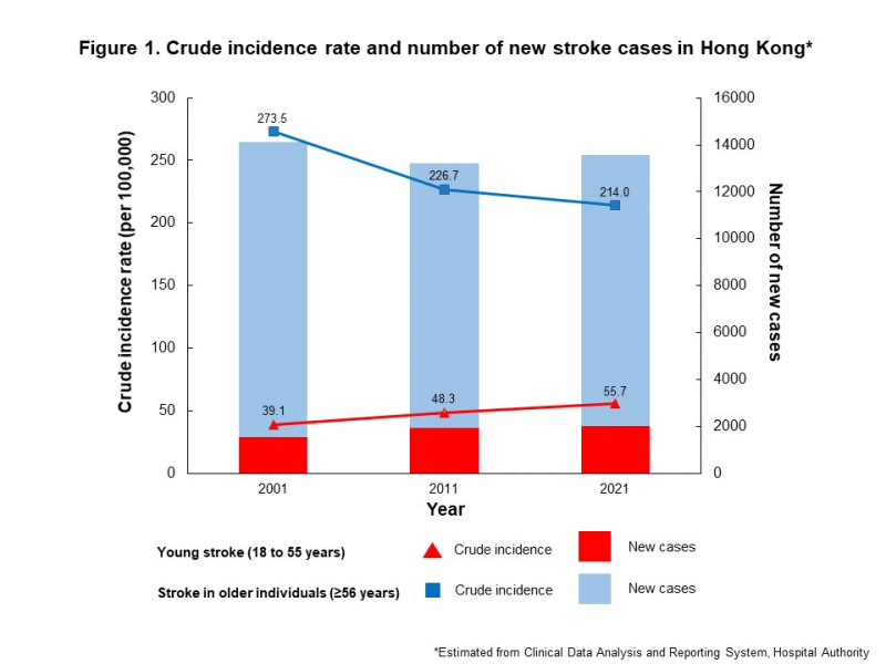香港大學李嘉誠醫學院(港大醫學院)臨床醫學學院內科學系中風研究組發現2001至2021年期間,香港的年輕中風(指中風發生於18至55歲)發病率增加近三成。有見及此,研究團隊倡議要有效控制血管風險因素,尤其是高血壓。