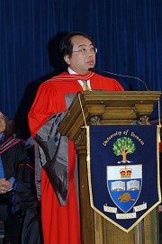 他續說:「2002年,我接獲香港大學的邀請回香港出任港大校長,這實在是一個艱鉅的決定,港大校長一職可給予我寶貴機會,為亞太區首屈一指的大學作出貢獻,並為高等教育服務,我會致力擔當此兩所優秀大學、並兩個國際知名城市的橋樑。」