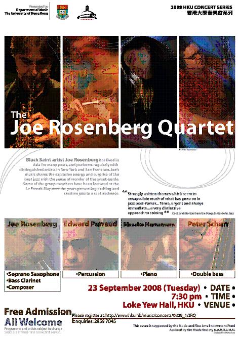 香港大學音樂系邀請了著名爵士樂隊喬.羅森博格爵士四重奏於二零零八年九月二十三日(星期二)晚上七時半,假香港大學陸佑堂舉行爵士音樂會。免費入場,歡迎各界人士蒞臨欣賞。