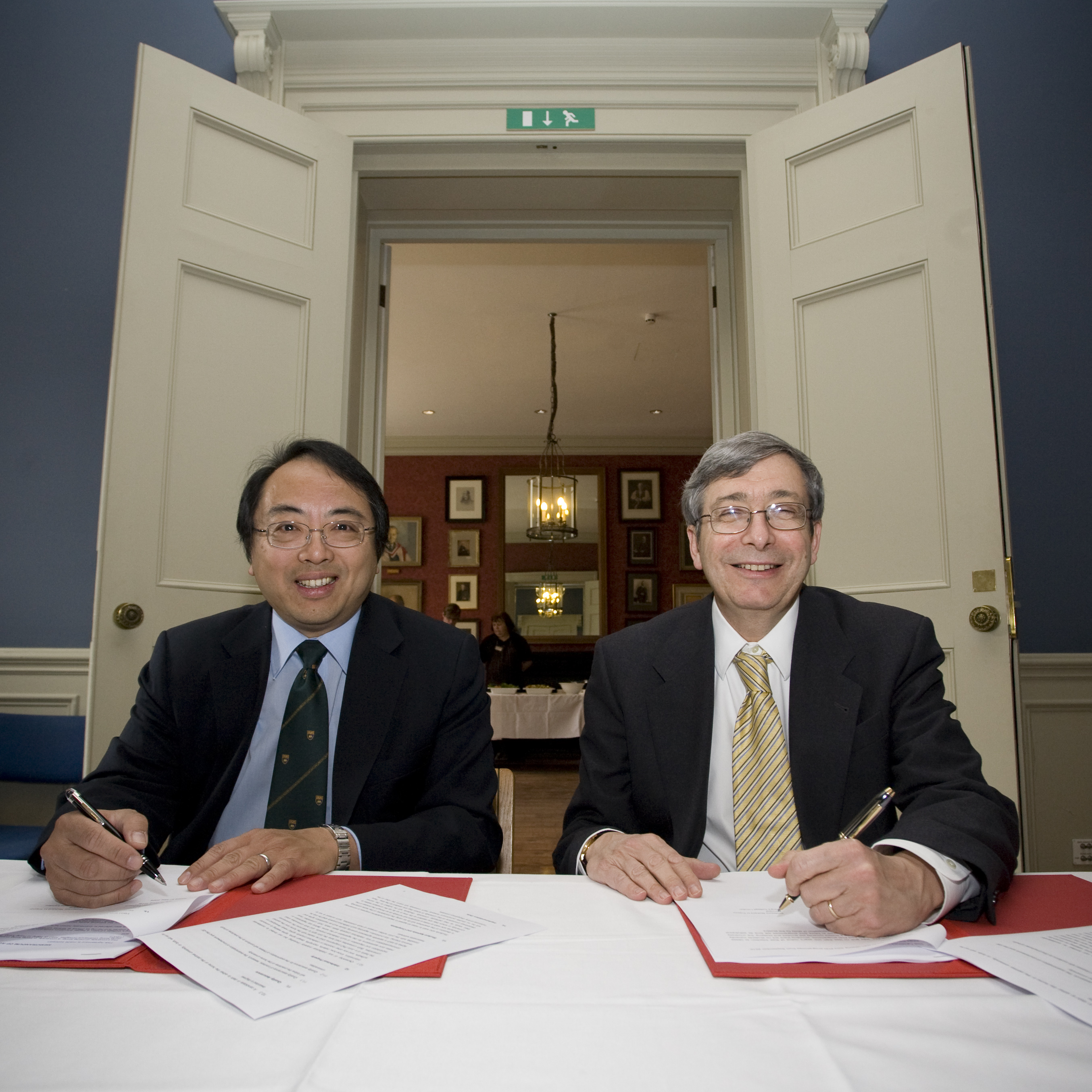 港大校長徐立之及英國倫敦大學國王學院校長Richard H Trainor,簽署博士課程的合作協議,為兩間大學就博士研究課程定下合作框架。博士研究生會在雙方老師的指導下﹐進行研究工作,並要通過符合兩間大學水平的考試。