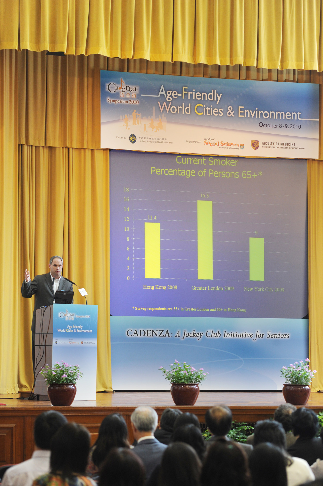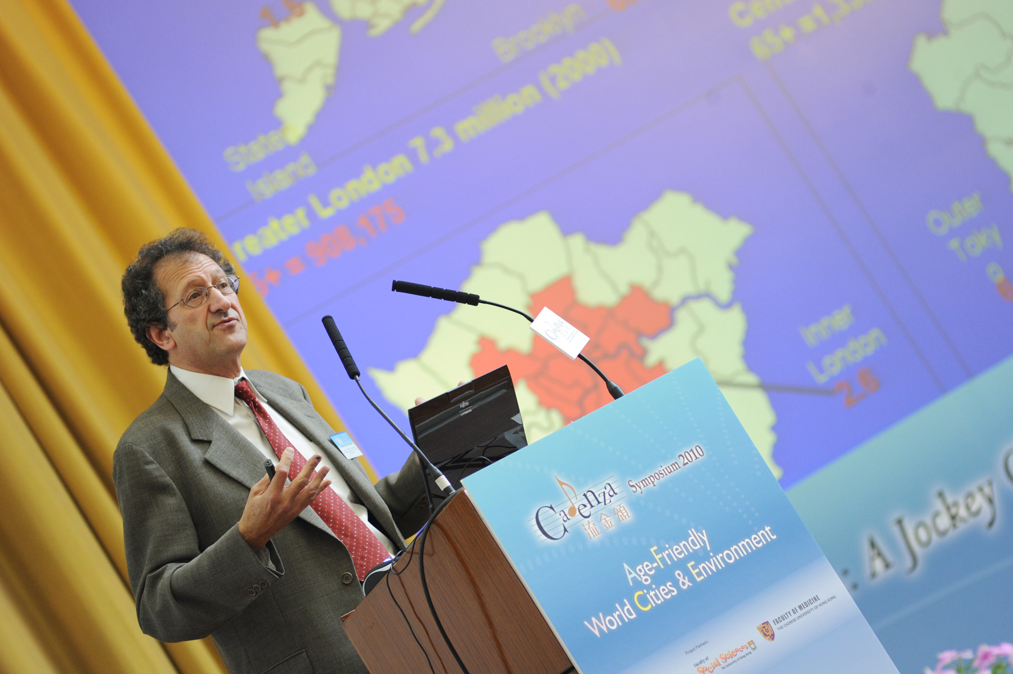 紐約大學 Robert F Wagner公共行政學院衞生政策與管理教授Victor Rodwin接著與參加者分享「國際都會」計劃中,紐約、倫敦、巴黎、東京及香港五個城市有關人口老化、醫療護理制度及健康狀況方面的課題,及探討普遍國際城市所面對的收入、住屋、健康狀況及醫療護理方面不平衡的情況。