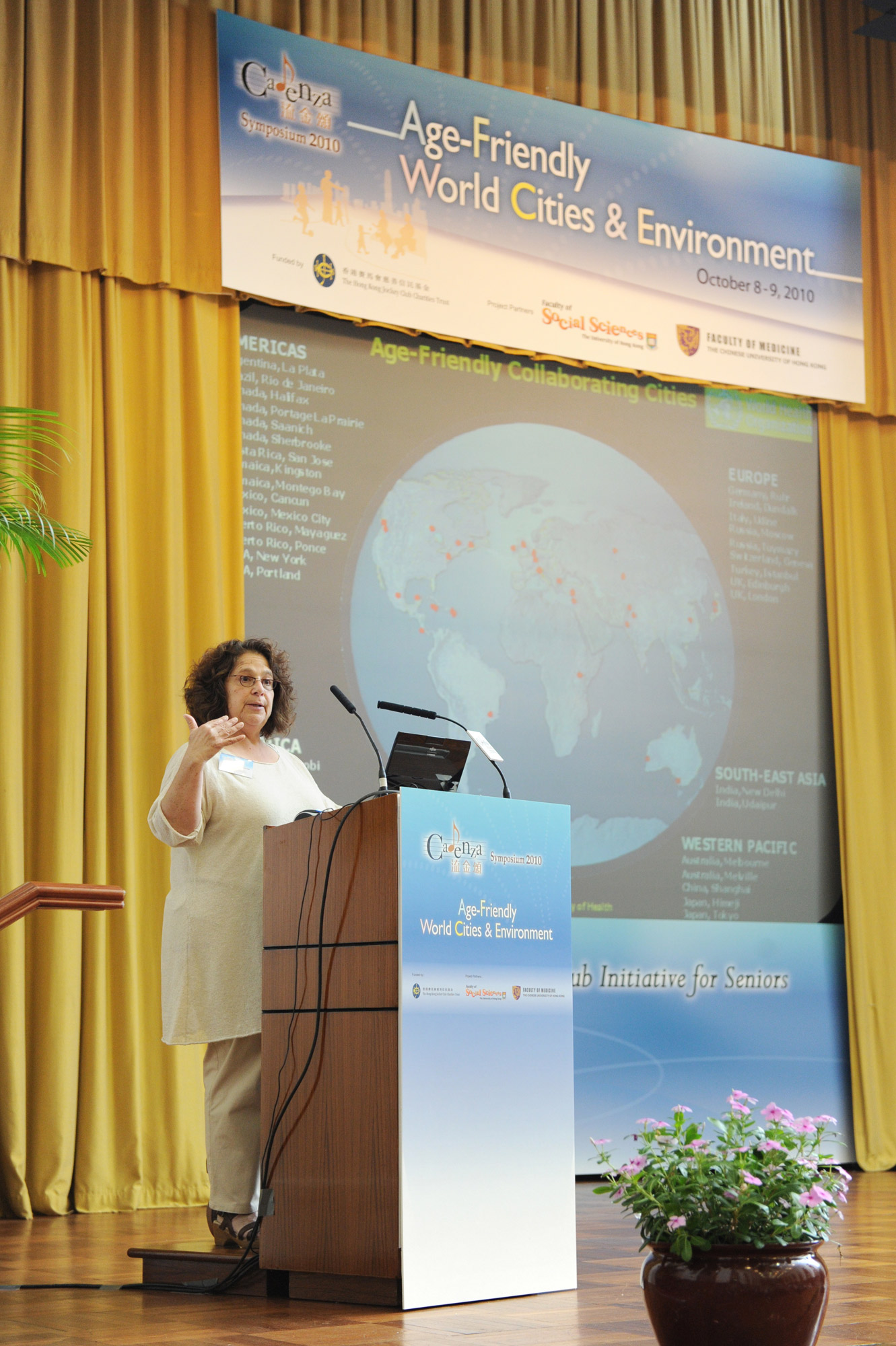 研討會首先由紐約醫學協會衞生政策副主席Ruth Finkelstein教授分享世衞守則及紐約建立友待長者社會的經驗。她指出世衞透過一套易於實行而普遍可負擔的指引,評估全球三十五個國際城市的友待長者程度,藉此推動這些城市作出改善。紐約市則因應這套指引,實行了五十九項改善計劃以及發展公私營合作項目,以提升友待長者的環境。