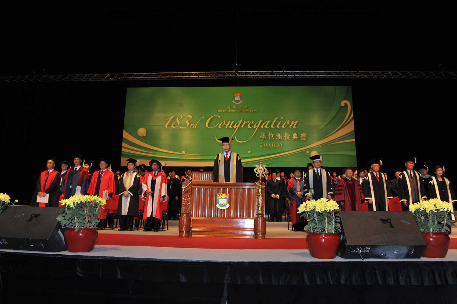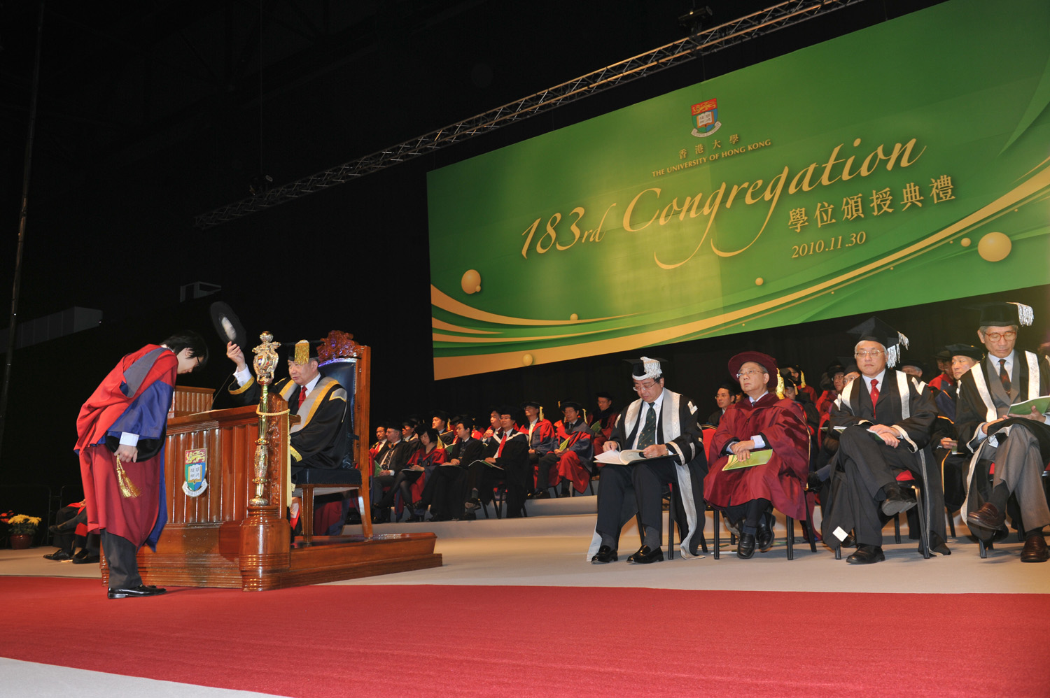 香港大學(港大)今天 (11月30日) 於亞洲國際博覽館舉行第一百八十三屆學位頒授典禮,頒授學位予7,183名畢業生。典禮由港大副校監李國寶博士主禮。