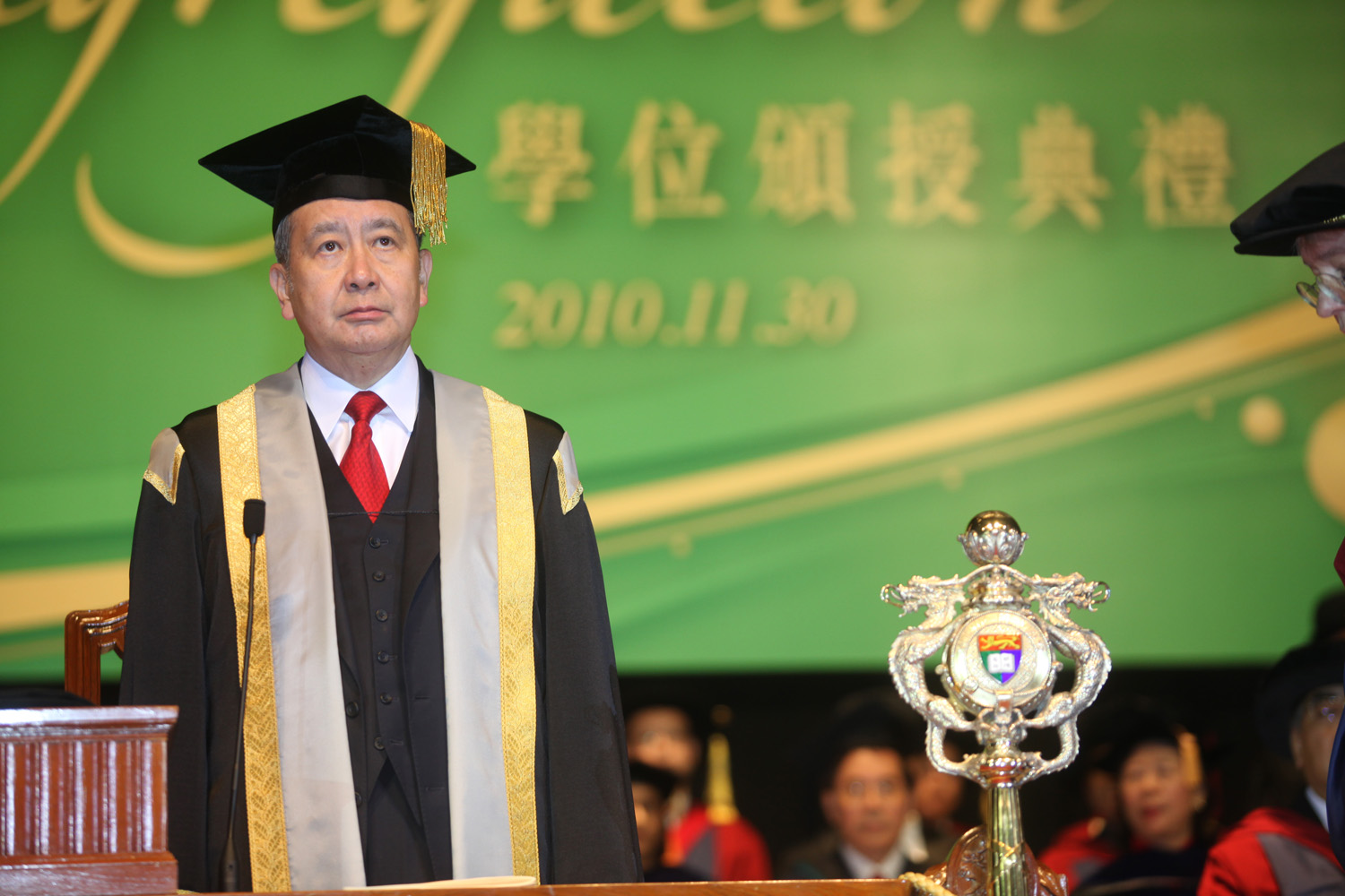 「作為2010年的7,183名畢業生,你們現在已跟138,000多名師兄師姐並肩扣連,以你們在大學所學所識,服務社群,發揮領導才能擔當社會棟樑。