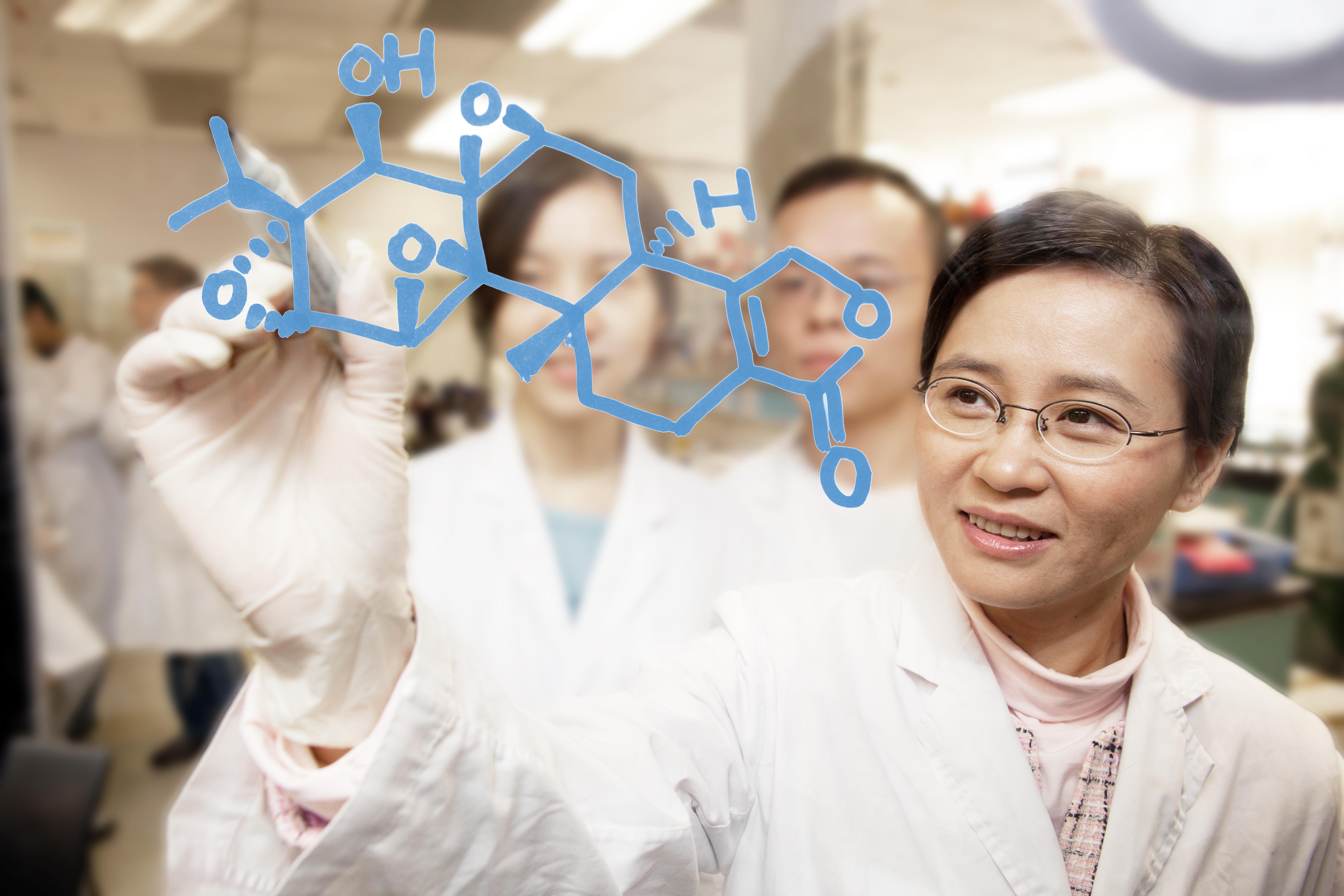 不少臨床研究指出中藥雷公藤具出色抗癌功效,但本身也具有較高毒性,正是這原因雷公藤久久未能被採用到抗癌藥當中。楊教授從雷公藤中活性分子的化學合成著手,找到其生物作用靶點,研發出一些低毒性、高效能、分子結構更簡單的抗癌新藥物,為藥物設計帶來新的思路。