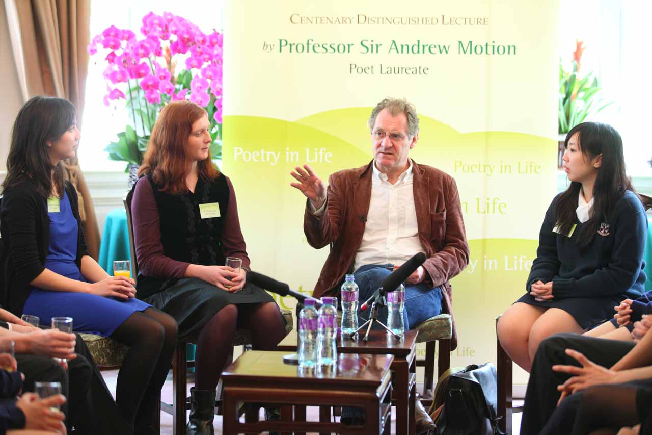16位分別來自瑪莉諾書院、嘉諾撤聖瑪莉書院、沙田學院及西島中學的預科生和4位香港大學文學院本科生今天(3 月11 日)參加香港大學舉辦的「樂膳‧好師 與傑出學人對談」活動,與1999-2009年英國桂冠詩人安德魯‧莫遜教授(Professor Sir Andrew Motion)見面,一邊共進午膳,一邊輕鬆交流。 「樂膳‧好師 與傑出學人對談」活動乃「百周年傑出學人講座」的延伸活動,安排到訪的傑出學人跟本地中學生見面,分享個人經歷,藉此啟發更多年輕學生,把知識交流活動推廣至大學以外的社群。 傳媒查詢,請聯絡香港大學節目經理麥家珮小姐 (電話:2859 8048, 6973 1689 /電郵:kpmak@hku.hk) 或港大傳訊及公共事務處助理經理(活動及傳媒)何家欣小姐 (電話︰2219 4263/電郵︰carho@hku.hk) |