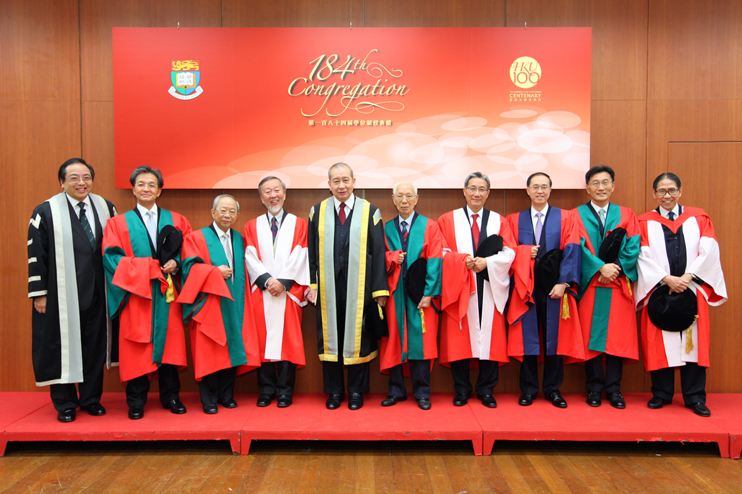 | 港大校長徐立之教授,蘇澤光博士,陳祖澤博士,高錕教授,港大副校監李國寶博士,田家炳博士,梁智仁教授,陳兆愷法官,鄭維志博士及港大校務委員會主席梁智鴻醫生 |