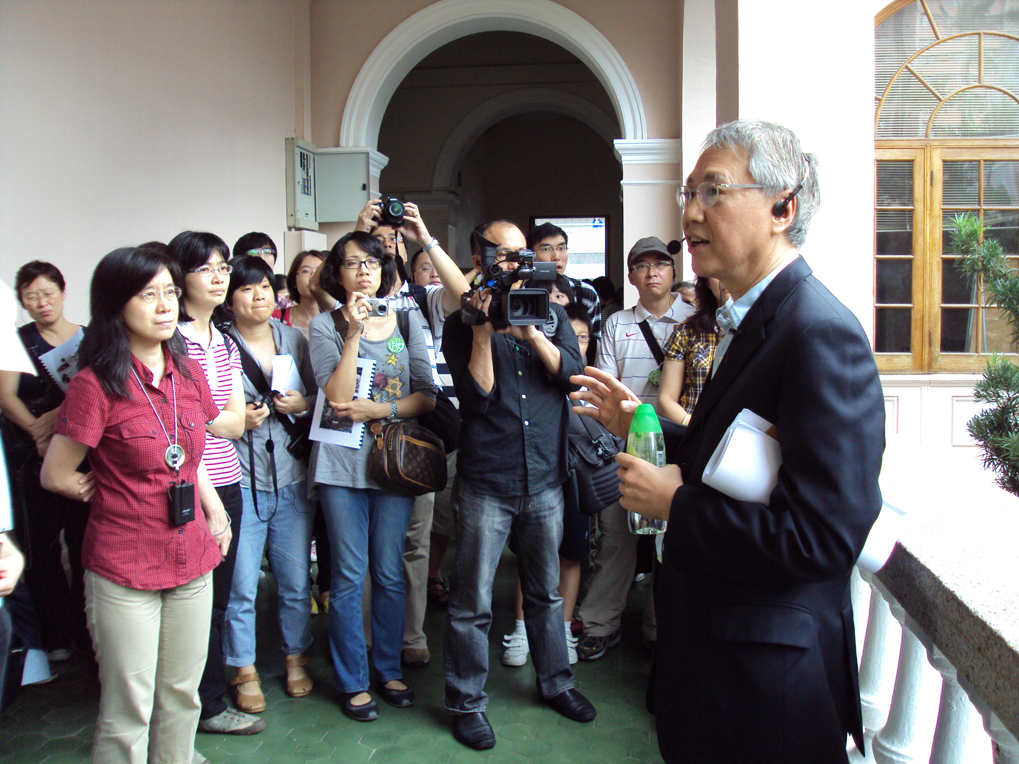 龍炳頤教授介紹本部大樓的建築 風格。本 部大樓為香港大學歷史最悠久的建築物。 |