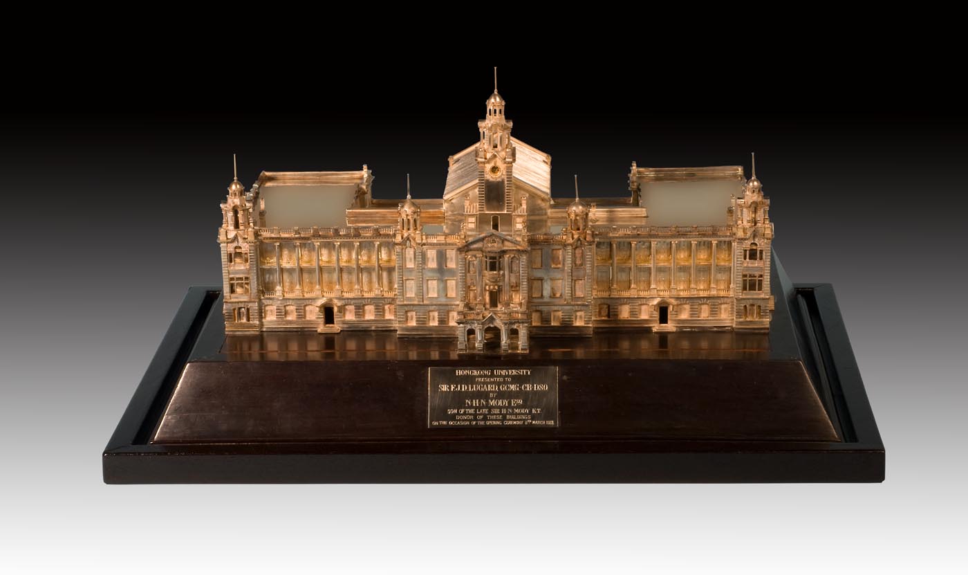 - 建校初期:展出港大的權杖、墨水瓶架、1912年本部大樓的銀製模型,以及多幅於1916年獻予港督盧吉爵士的校園建築圖則,均具歷史價值;