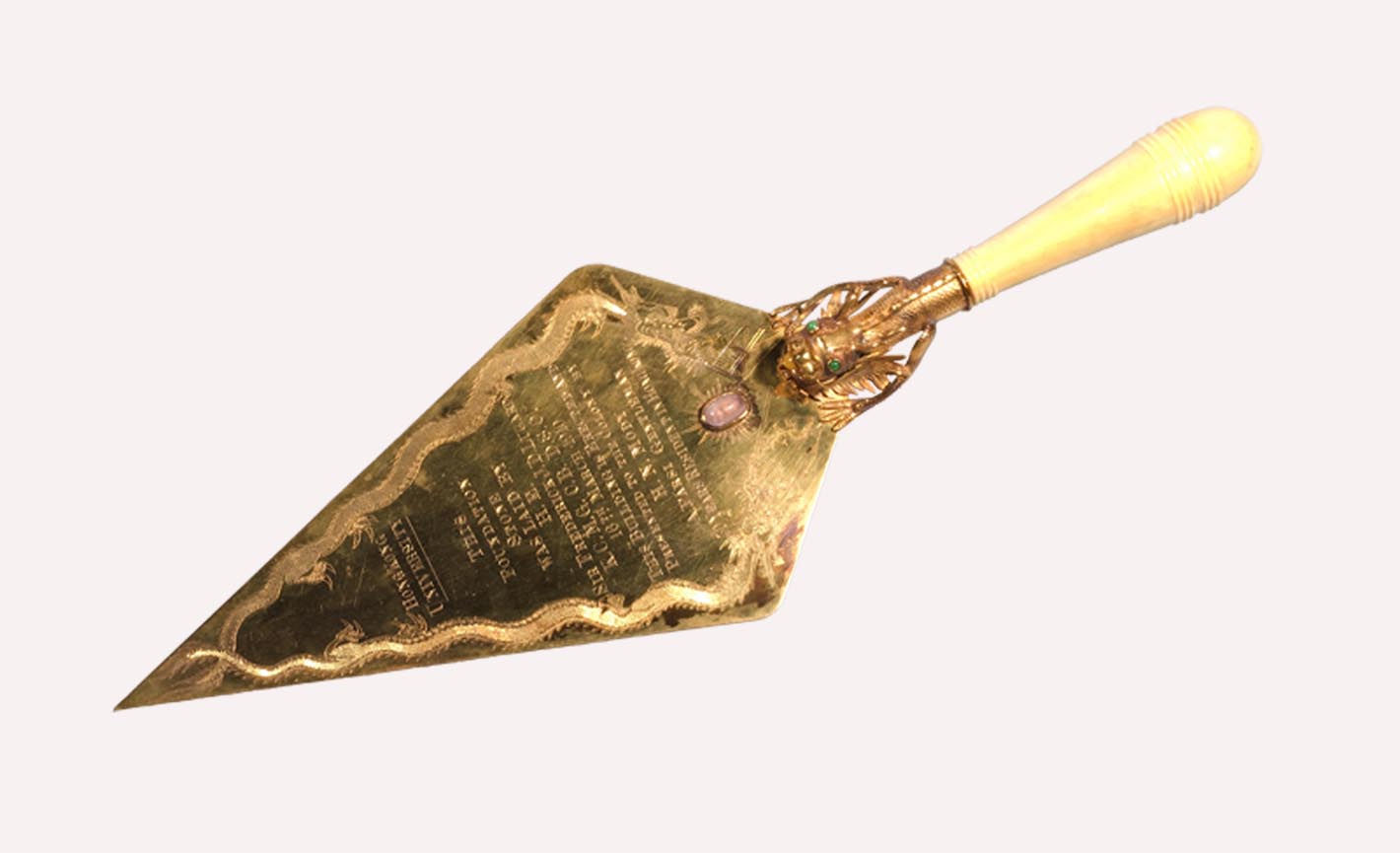 1910年3月16日由盧吉爵士主持主樓奠基禮所用的金鏟 |