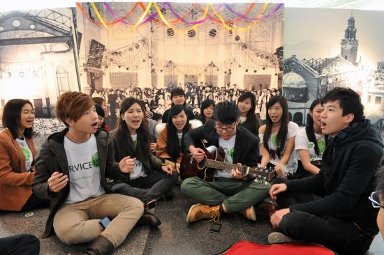 此外,會展兩翼之間的長廊,擺置了長達200米的「大學道」,佈置成各色各樣大學生活的剪影,載錄了港大大家庭成員的集體回憶,讓嘉賓拍攝留念。