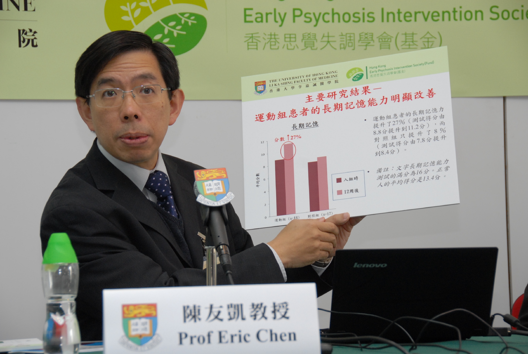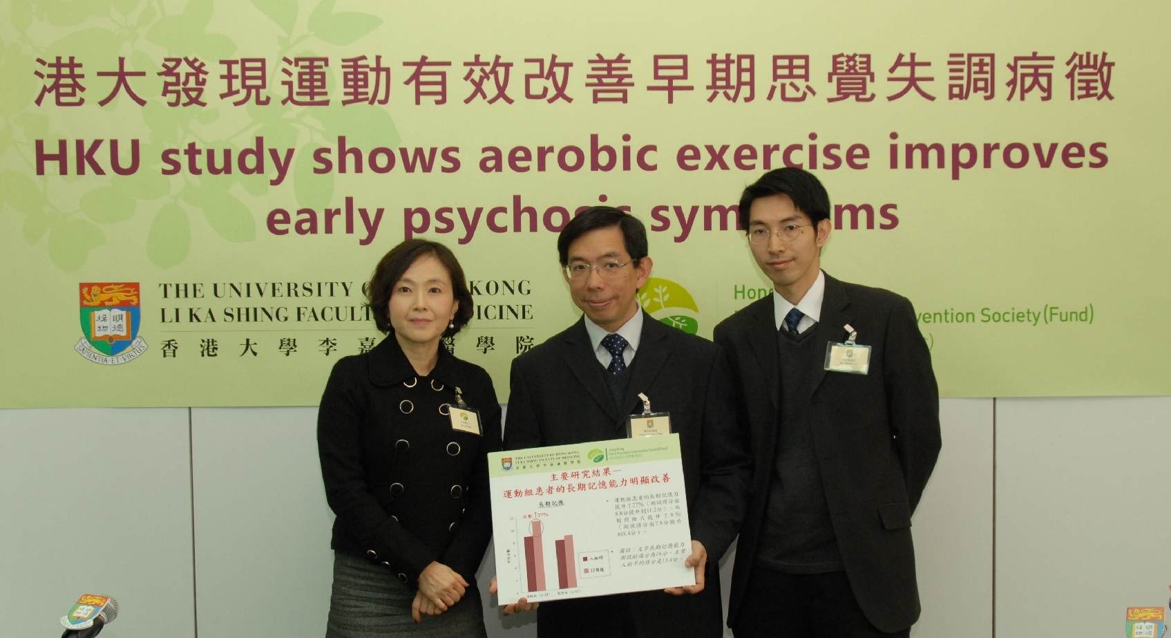 負責領導研究的香港大學李嘉誠醫學院精神醫學系臨床教授陳友凱教授指出:「初步的研究數據顯示運動可以修復早期思覺失調患者的認知功能缺陷。運動可能是通過改變大腦神經細胞的可塑性來提高認知功能。港大和香港思覺失調學會合作,針對思覺失調患者的能力和特別需要設計了一套名為FitMind 十式的簡易運動,並將在未來數月陸續推出一系列推廣活動,希望藉此提升社會大眾對運動重要性的認識。」