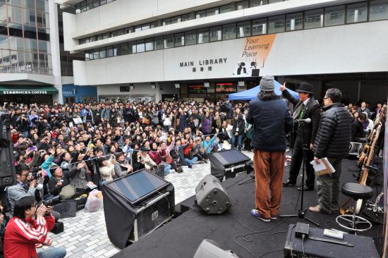 許冠傑聯同十多位港大學生合唱《明我以德》 |