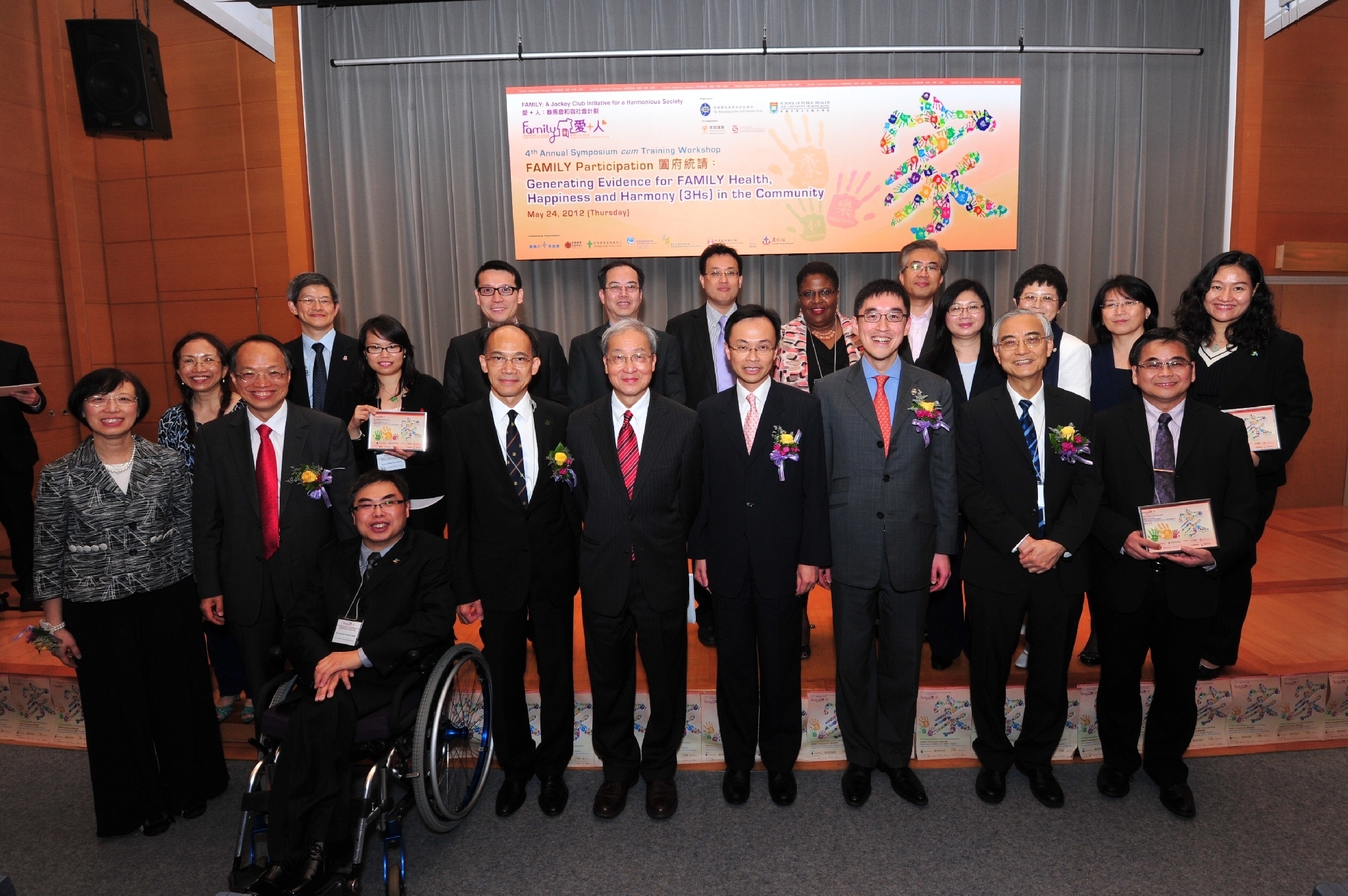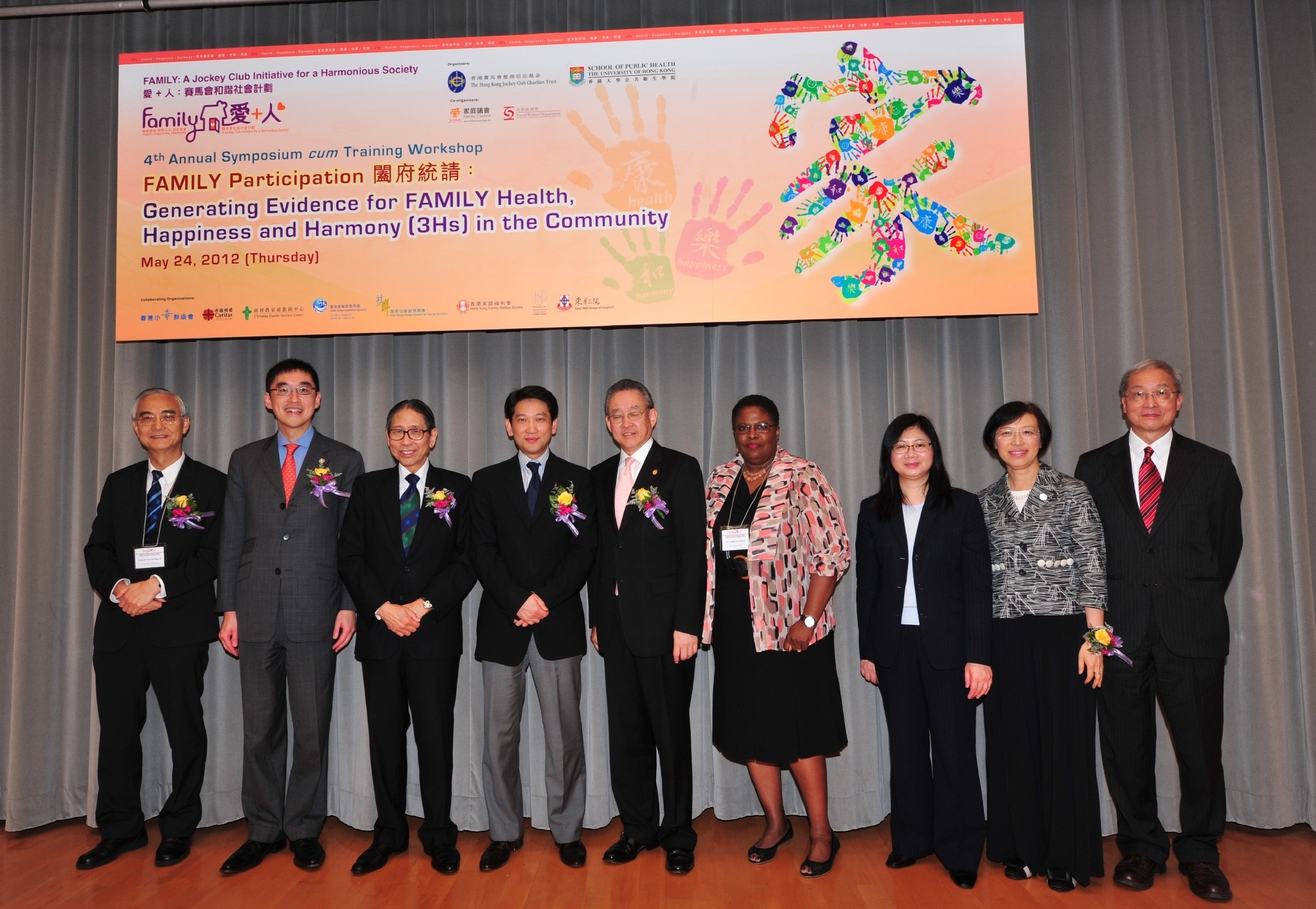 為慶祝每年5月15日的國際家庭日,今天(5月24日),馬會與香港大學公共衛生學院、家庭議會及社會福利署攜手合作,舉辦第四屆研討會,探討跨界別合作,透過以社區為本的參與模式,推廣健康、快樂、和諧家庭。是次研討會由民政事務局常任秘書長楊立門先生、社會福利署署長聶德權太平紳士、馬會董事周永健先生、香港大學校務委員會主席梁智鴻醫生、深水埗區議會主席郭振華太平紳士、馬會慈善事務執行總監蘇彰德先生及香港大學李嘉誠醫學院院長李心平教授主持開幕禮。