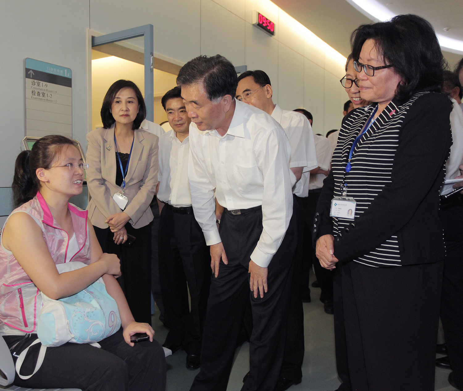 香港大學校務委員會主席、香港大學深圳醫院名譽院長梁智鴻醫生,香港大學校長徐立之教授,香港大學醫學院院長李心平教授,香港大學深圳醫院院長鄧惠瓊教授等歡迎汪洋一行訪問團, 並由鄧惠瓊教授介紹了醫院在醫療管理體制和模式上的改革和創新,及未來的發展方向。