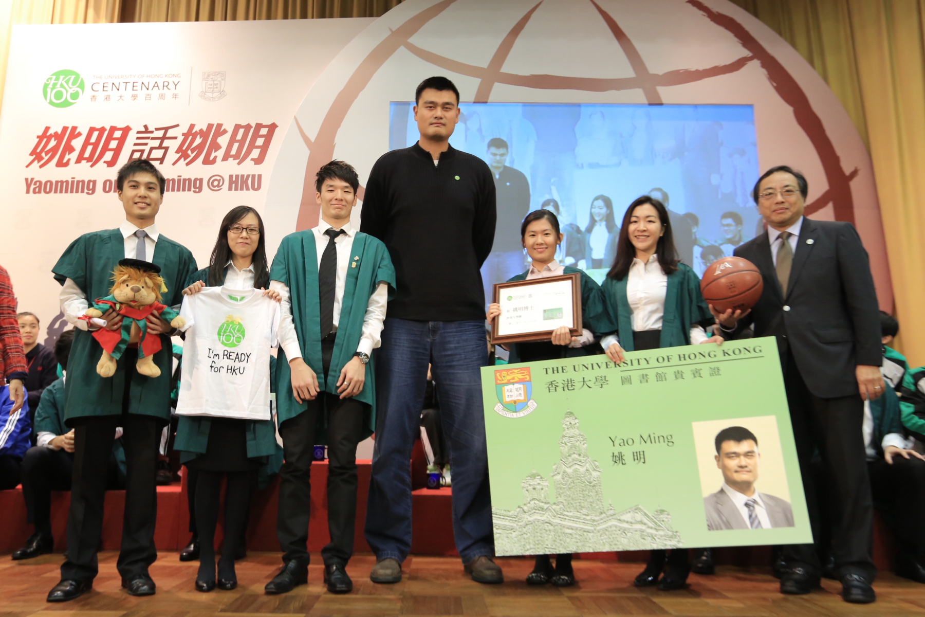 世界著名籃球運動員姚明今天(11月28日星期三)在港大出席對談會,與大學師生一起探索超越籃球的天空。大約1,000名港大師生,校友和中學生出席了在陸佑堂舉行的對談會,或是在鄰近的課室觀賞網上直播對談會內容,了解姚明對籃球,對慈善工作,家庭和學業的看法。