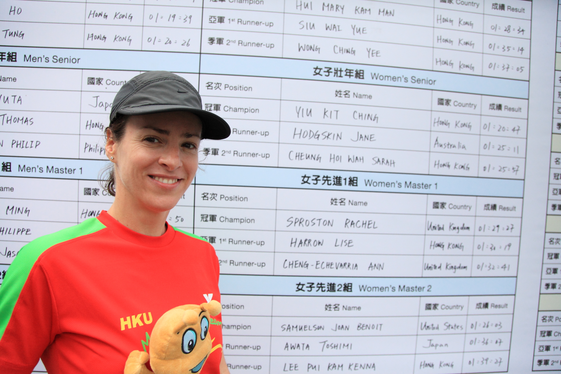 港大校友 Rachel Sproston 在半馬拉松女子先進一組賽事中獲得冠軍,梁鳳鳴醫生獲得全馬拉松女子先進二組亞軍。醫科學生余穎曦分別獲得十公里挑戰賽女子組總亞軍和壯年組亞軍。