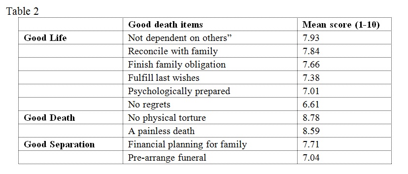 What is “good death”? According to a survey in 2004, the following scored the highest: