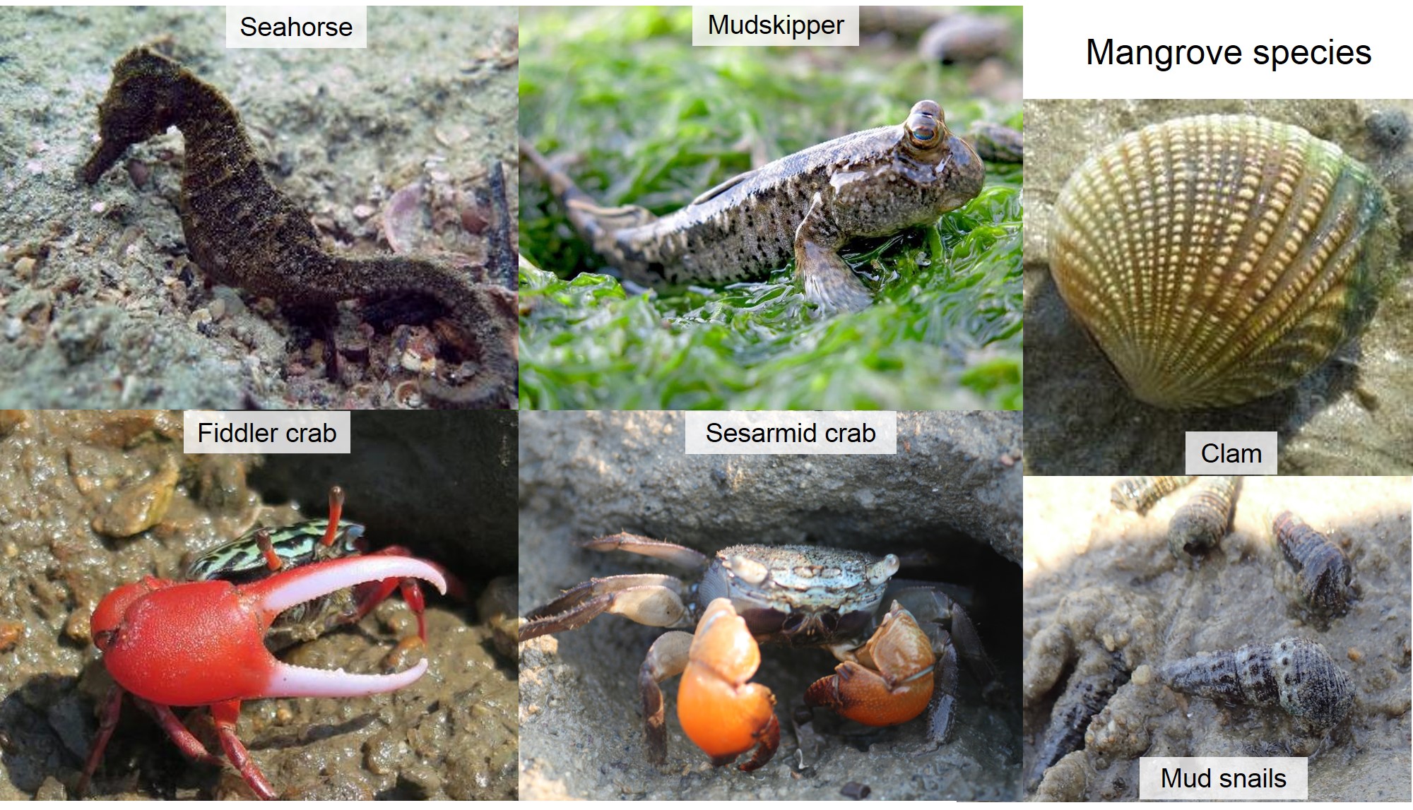 Figure 6 Different ecological habitats host different ranges of species (Photo credits: Dr Stefano Cannicci, Dr Calton Law, Dr Terence Ng and Dr Cynthia Yau)