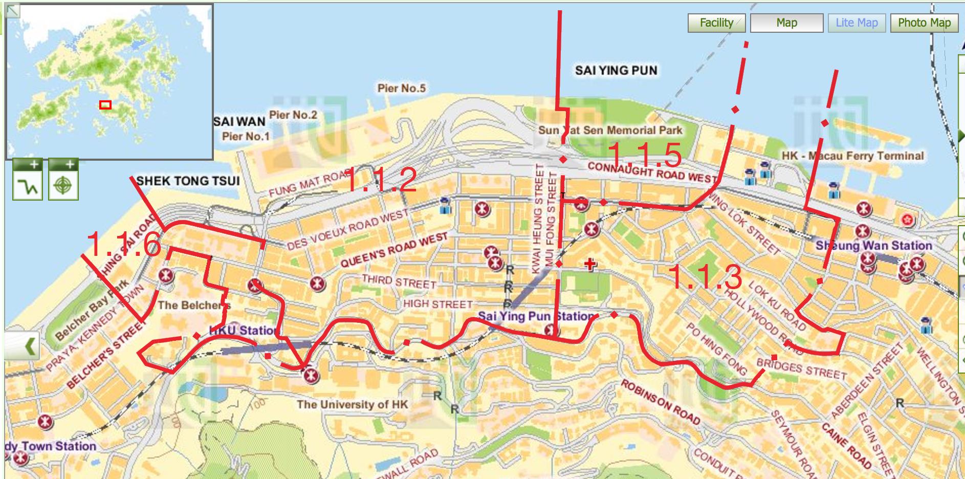 The research area includes Tertiary Planning Units (TPUs) 1.1.2, 1.1.3, 1.1.5 and 1.1.6, which represent areas from Sai Ying Pun to Shek Tong Tsui (see Figure 1). The study first used a mathematical model, with vehicle flow data provided by the Hong Kong Transport Department as a parameter, to calculate the noise generated by the traffic. GIS was then used to calculate the traffic noise at different times in different places in the district to analyse the impact of traffic noise to nearby residents. The research findings were represented in temporal GIS to show the variation of traffic noise level in one day.