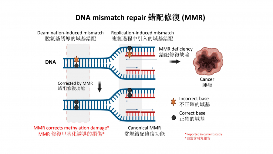 Researchers at the School of Biomedical Sciences, LKS Faculty of Medicine of The University of Hong Kong (HKUMed) discovered an unknown role of DNA mismatch repair (MMR) in maintaining the integrity of the human genome. People born with defective MMR, known as Lynch syndrome, will have a high chance of developing cancer by early adulthood. The research, now published in Science Advances, highlighted why MMR is so important in protecting us from developing cancer (link to publication).