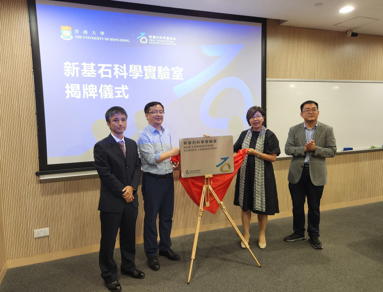 新基石科學實驗室揭牌儀式與項目交流環節於6月21日在香港大學(港大)舉行。港大副校長(研究)申作軍教授,新基石研究員港大物理系講座教授姚望、新基石科學基金會副理事長兼秘書長王嫵蓉女士,以及新基石科學基金會物理領域運營負責人王永博士共同為港大姚望教授的「新基石科學實驗室」揭牌。