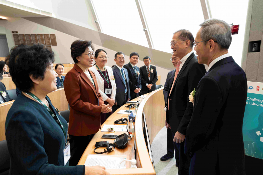 香港特區政府醫務衞生局盧寵茂局長在致辭時提到:「為應對多重健康挑戰,特區政府全力支持香港醫療專業的教育和培訓,包括提供資金,提升和擴充醫療教學設施,持續增加醫科生學額等;我們也期望透過先進的科技,為學生提供更優質的教學和培訓,為國家醫療事業的高質量發展及生物醫藥的新質生產力做出更大貢獻。」