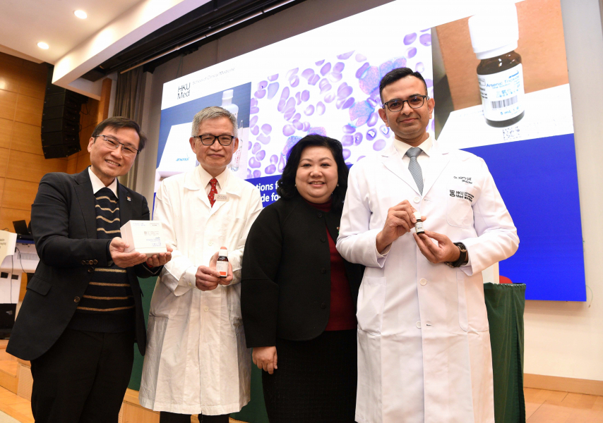 香港大學李嘉誠醫學院 (港大醫學院)研究團隊成功研發的三氧化二砷(俗稱砒霜)口服藥劑(藥用口服砒霜或ARSENOL®),可用於治療一種死亡率高的血癌 ── 急性早幼粒細胞白血病(acute promyelocytic leukaemia,APL)。藥用口服砒霜的發明和應用是香港醫學史上的重要里程碑,意義深遠。這不僅是香港首款自主發明和製造的處方藥,也是首個獲得美國、歐洲和日本專利的藥物。經過廿載的不懈努力,港大醫學院研究團隊成功轉化香港研發成果為臨床應用,將藥用口服砒霜納入APL患者的治療方案。過往廣泛的臨床研究結果顯示,藥用口服砒霜具有高效性和安全性,APL 患者的整體存活率超過97%,能顯著減輕副作用和治療負擔。