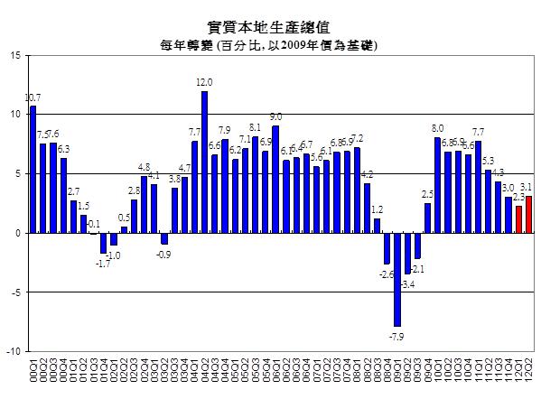 香港大學香港經濟及商業策略研究所行政總監邵啟發博士指出:「由於預計外部需求反彈,香港實質本地生產總值增長從2012年第一季的2.3%,加速上升至第二季的3.1%。今年的上半年,香港實質本地生產總值預計將增長2.7%,而去年上半年則錄得6.5%的增長。這明顯的放緩可歸咎於歐洲主權債務危機所造成的外部需求萎縮。但隨着希臘主權債務的解決,美國經濟逐步復甦,內地維持強勁增長,持續的基建項目和低利率環境將繼續為本年度香港經濟增長提供支持。